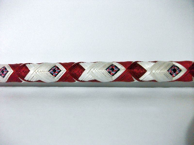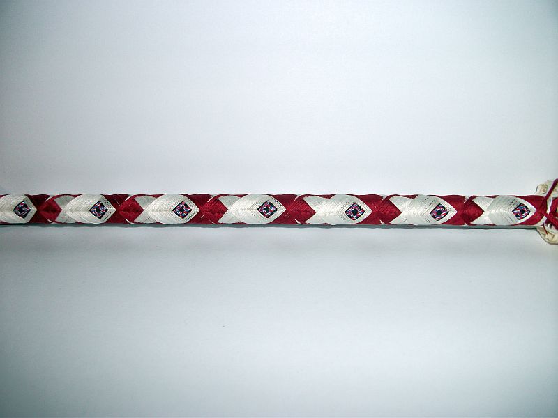 Hi fellas,made this one by accident.Was going for a skinny 8 point star,realized I was going to run out of room on one side.I had to reverse directions and remove half a pass with the white.Turns out a fish appeared for the design.I used black,red/wht/blu twist,white,red thread colors.