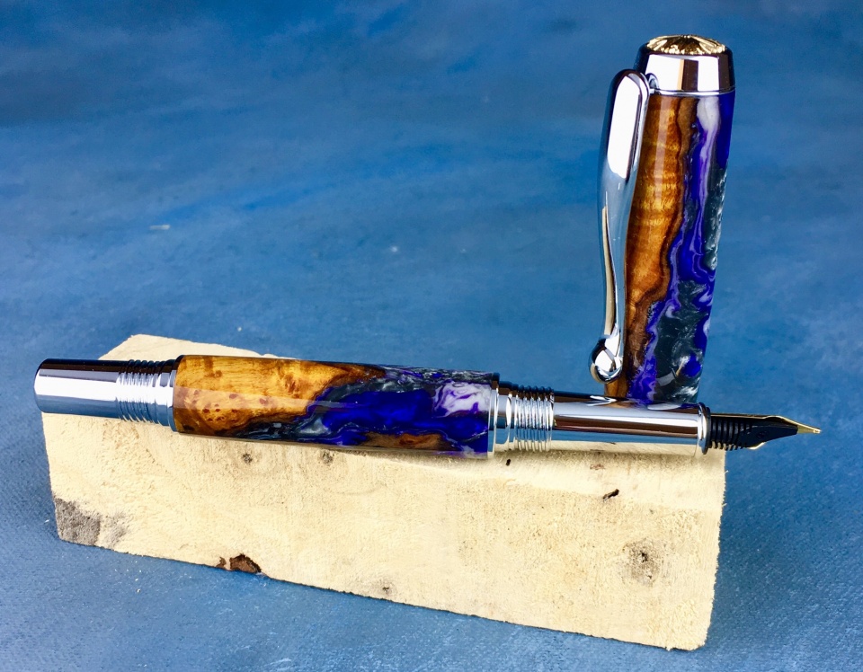 If no one buys it this weekend, I'll keep it. The grain of the wood is amazing and I see pretty wood daily. The blue alumilite has lots of interesting swirl of color too not shown in these quick shots. Thanks for all your kind words.