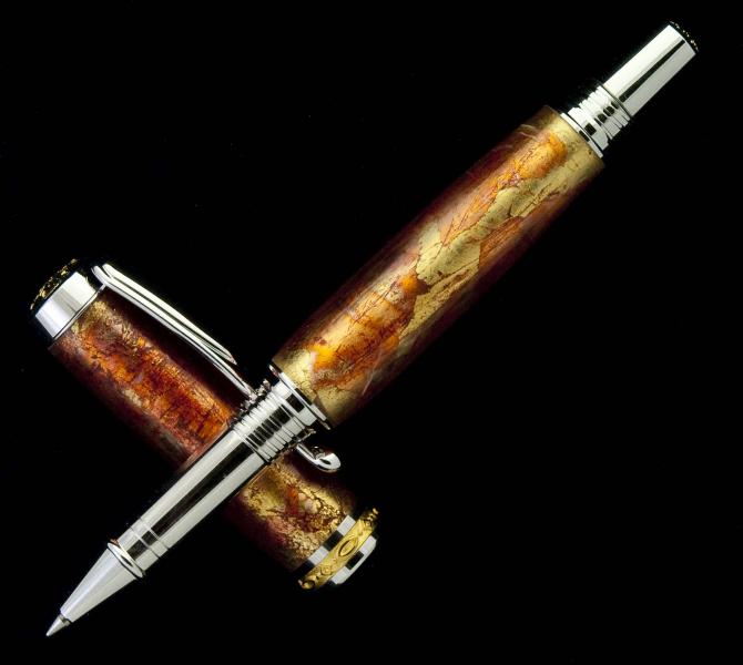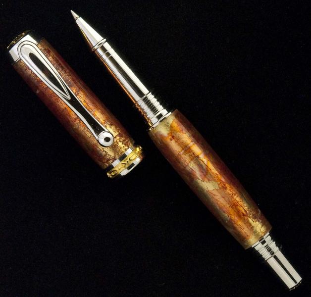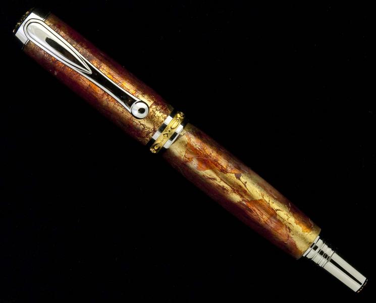 Couldn't decide whether to go with a Black Ti/Rhodium Jr. Statesman or the 22K/Rhodium so I tried on both. The pen looks nicer in the hand with the 22K/Rhodium and my keeper/wife:rolleyes: convinced me to go with it.Who am I to argue.:rolleyes:. The pictures don't do this pen justice. It looked stunning when seen at dawn on the way from the shop to house. Stopped and admired.
