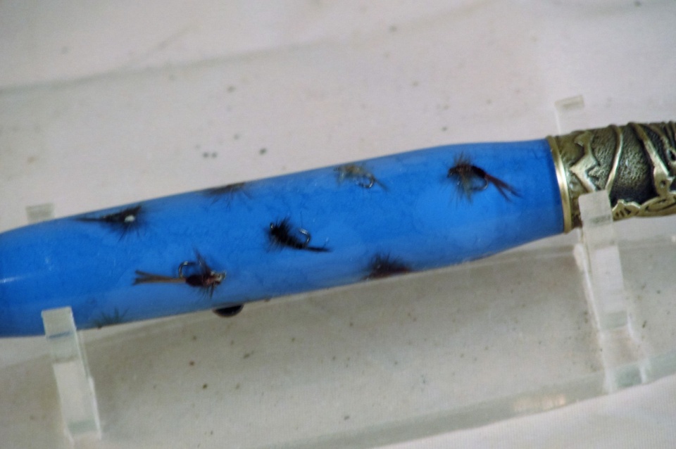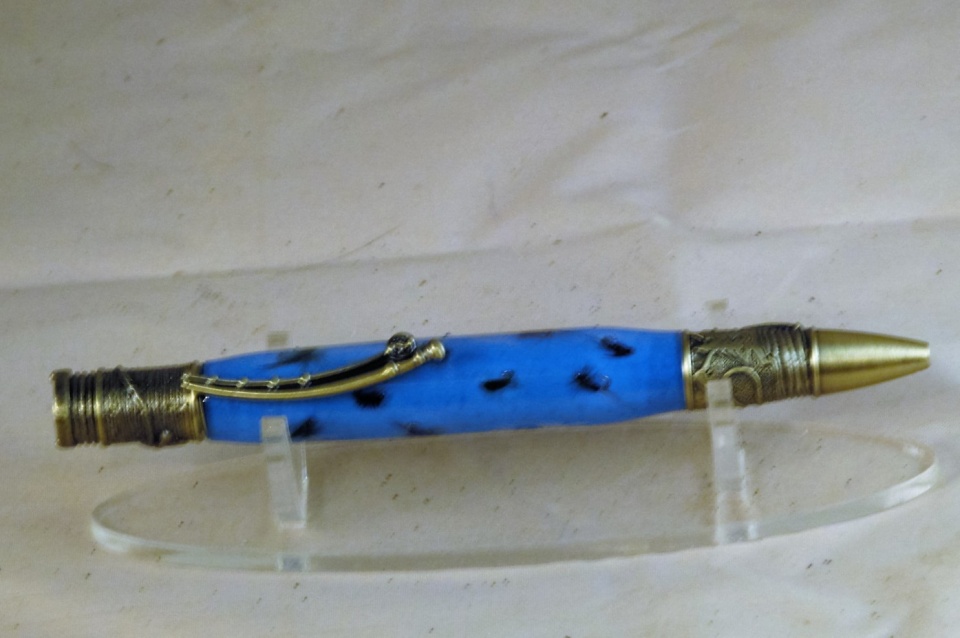 This is a PSI Fly Fishing Kit in Antique Brass. The body of this pen was made from real hand tied fishing flies and set in Clear Silmar 41. Wet sanded to 2500 and polished with One-Step. As always all comments are welcome and thanks for looking