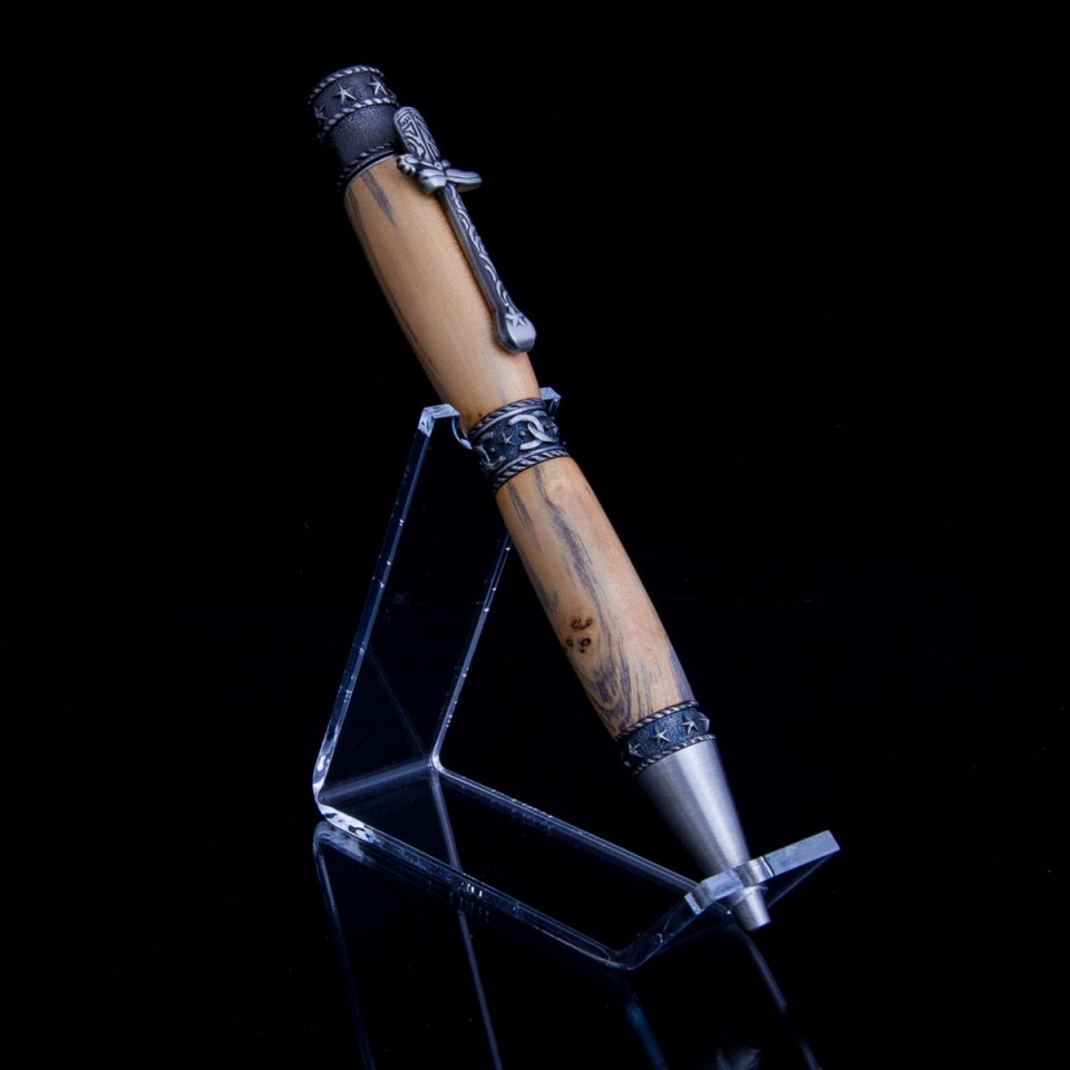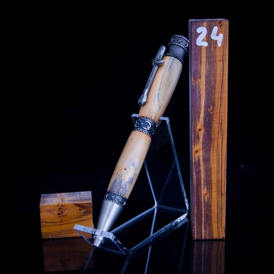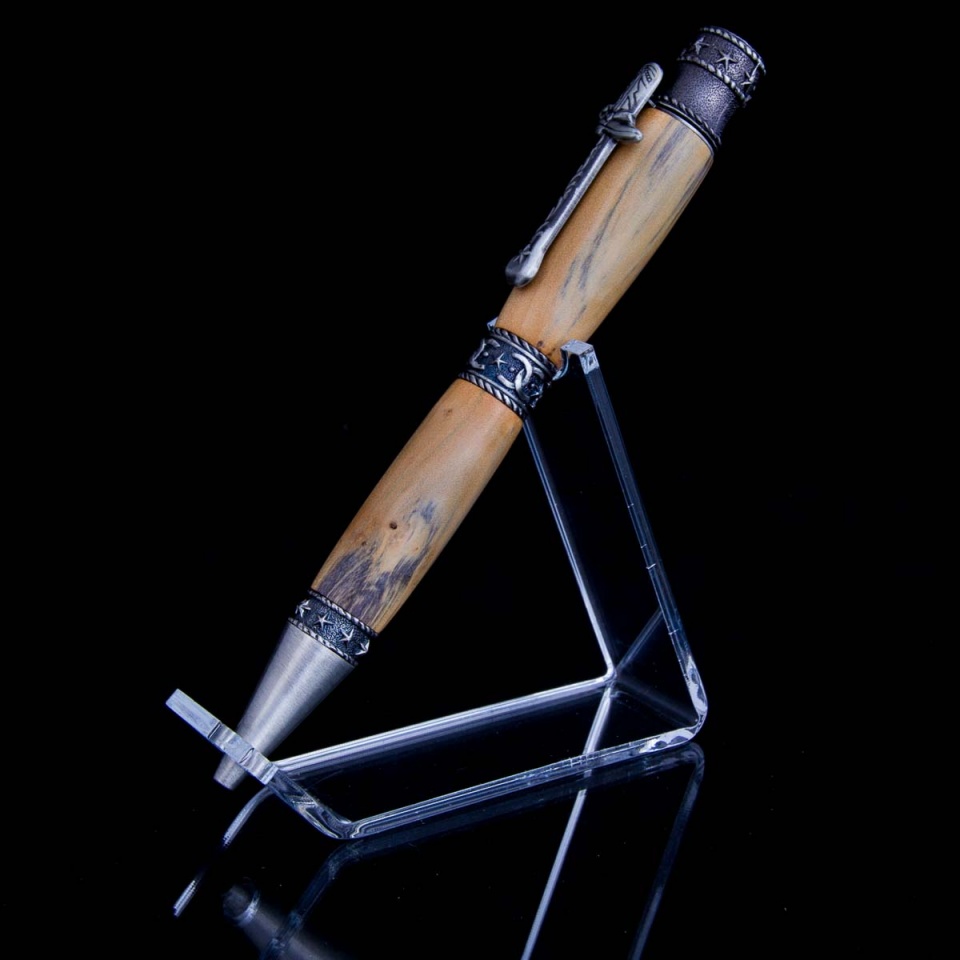 A gift for a friend who's very much into horse shows and such. The wood is a piece of stabilized Macrocarpa from robutacion (George's Bits o' Timber).