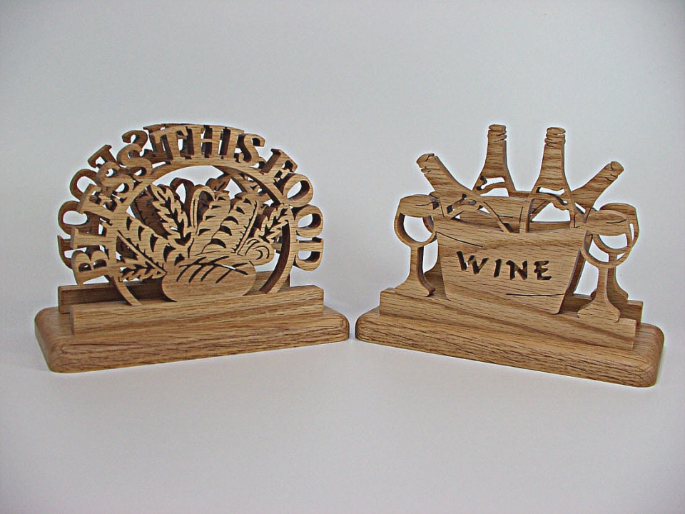 Yes I was going to add some explanations with each piece but chose not to and figured I could just as well as answer any questions. Yes they are napkin holders and the one next to the Irish plaque is also. I make other types but these are a new style. Thanks for the kind words.