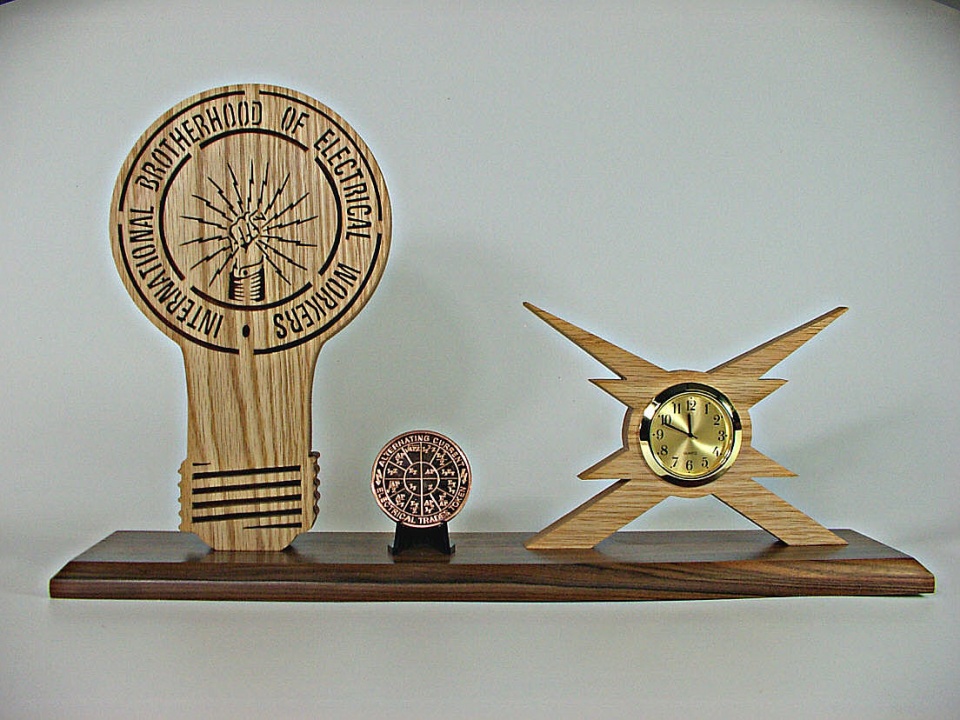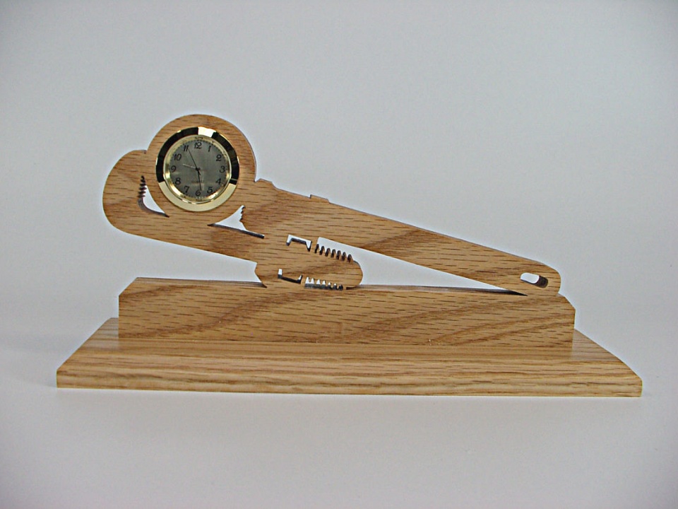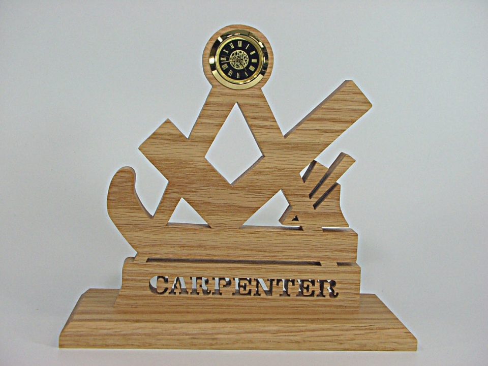 Well my craft show season is over for the year and have to say things went well or at least they were better than the last 2 years. Maybe the economy has turned around somewhat. Who knows. But with that said I thought I would show some of the latest projects I added this year to my line. Maybe some of these were why things were a bit better. But what I did was use some patterns that were made for me at my request because I do not draw well, and some patterns are just my own creations and some I just took parts of many and came up with a project. I started a theme group of occupational clocks and projects. I will be adding to these over the coming years as I begin to change my line of products that I sell. I have so many more ideas but can not do all at once. This was basically 3 months work after I was able to get back in my shop after some health issues. I made multiples of some to increase inventory but some I sold out on and will again in the summer stop pen turning and turn interest back to this type work. But for now I will try to get back to pen turning for awhile and do some creating in that field.