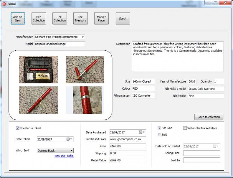 I'm currently developing software for managing a collection of fountain pens. Follow the progress here, and sign up to be notified when the Trial version is available for download!