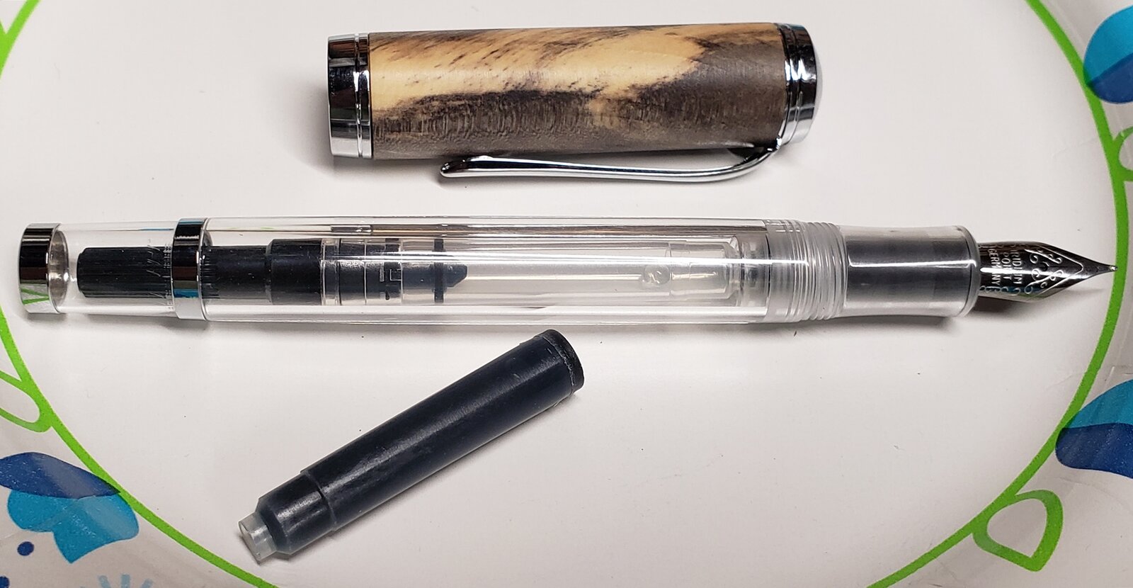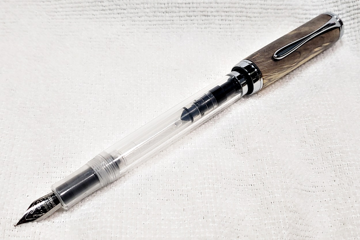 There are, however, two factors that I think are important in choosing pen kits. The first is how the cap connects with the body - I prefer pens with a screw on cap because that design is more secure and minimizes the tendency for the nib and feed to dry out between uses, but I admit that most of the pens in my EDC rotation are the alternate snap cap design. The other factor is whether there is a center band. This is purely a matter of esthetics - if there is no center band, then the end grain of the wood used to make the cap is visible when the cap is removed. I don't find that very attractive.