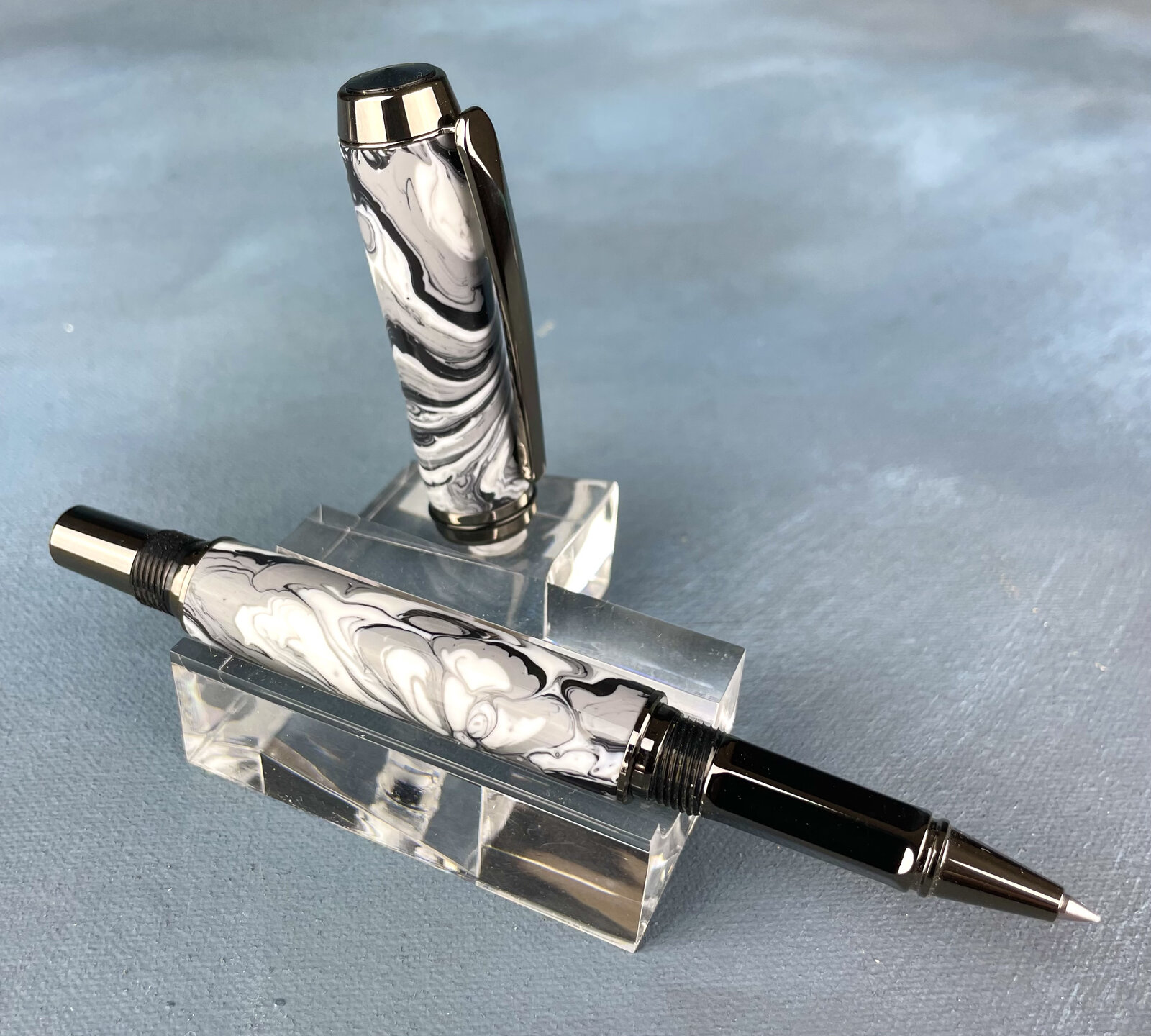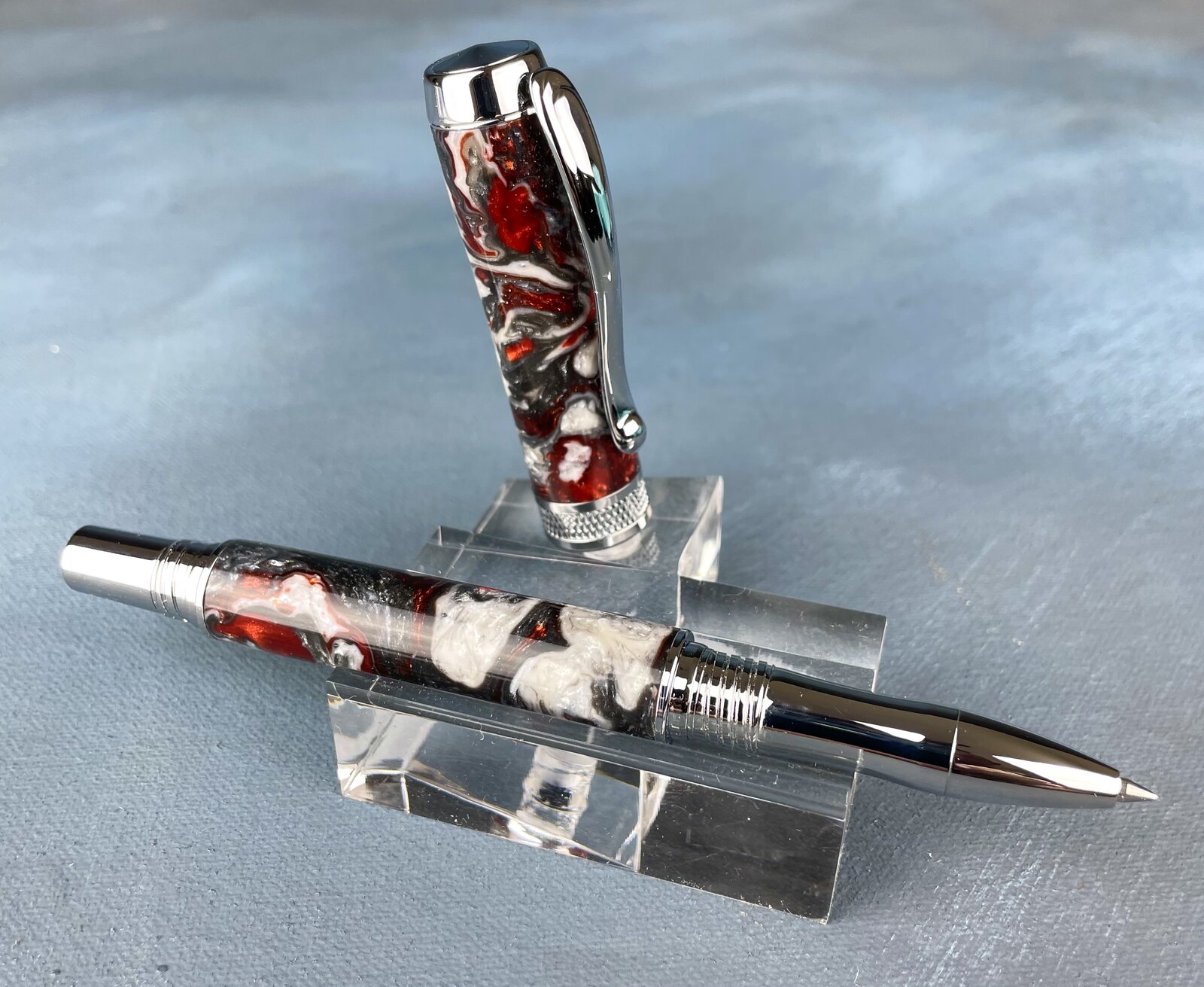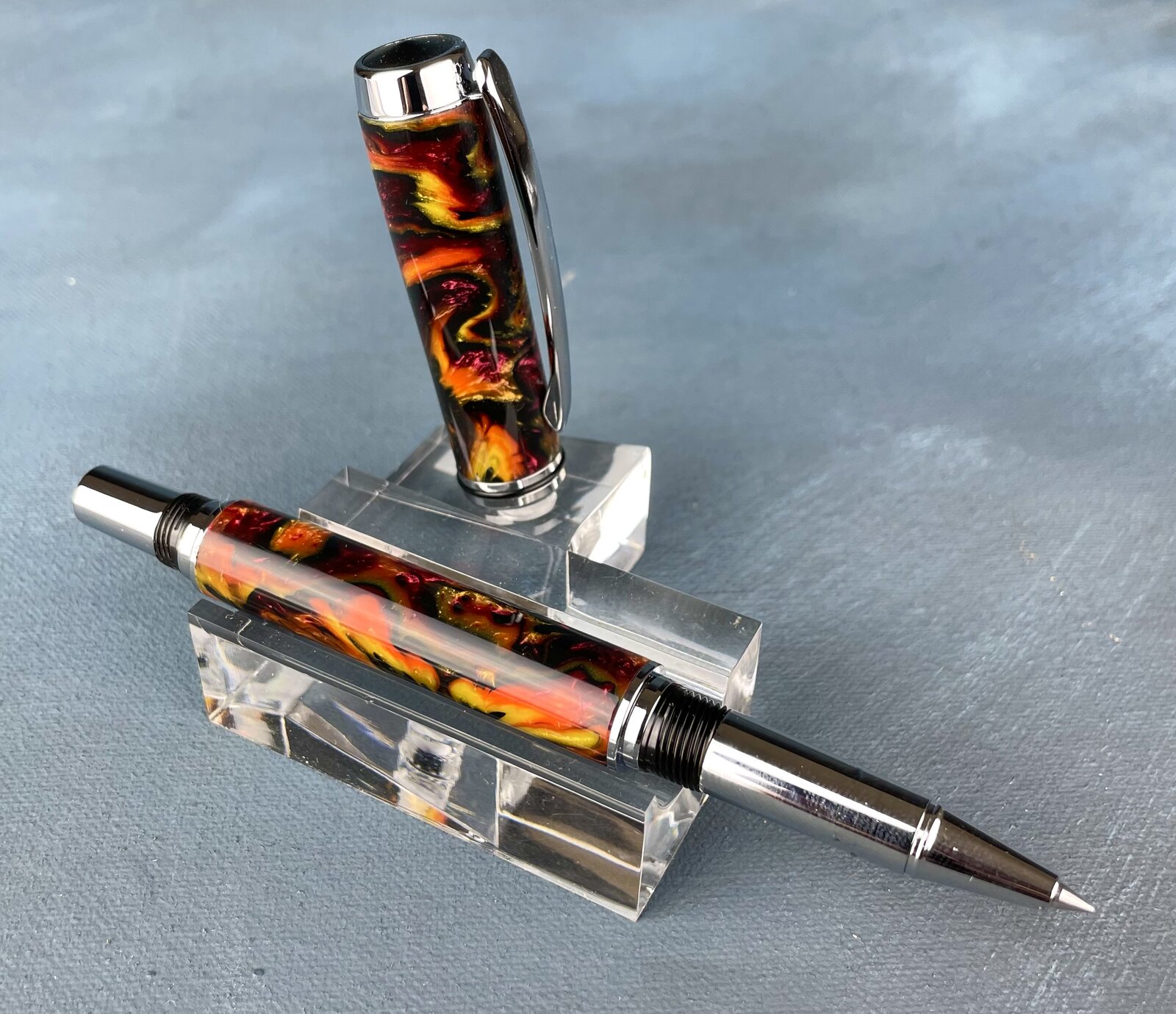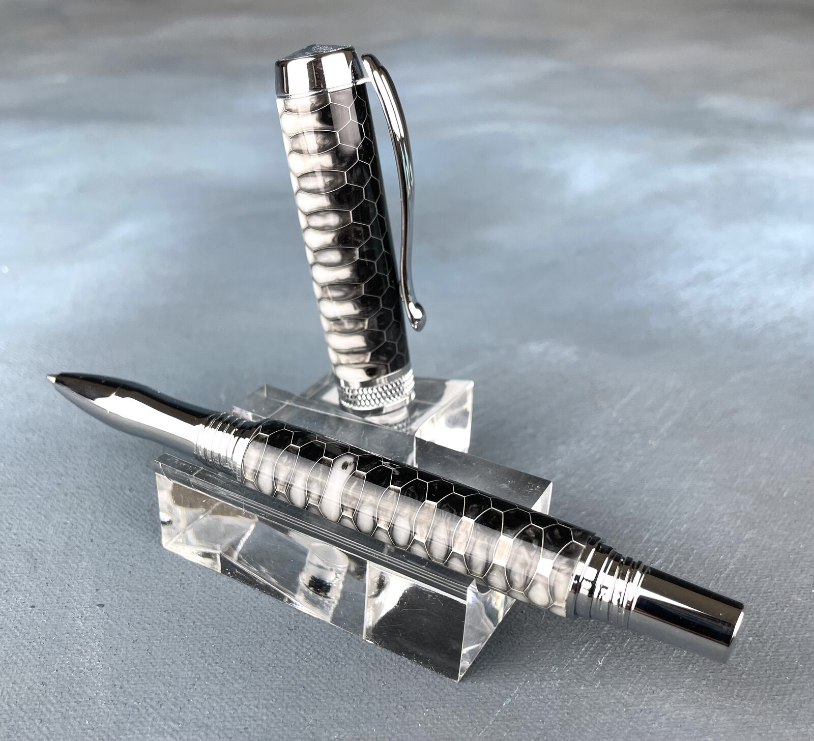 I don't know about that, the shine shows up pretty well. Of course pictures never do them justice, though. Those are all beautiful pens! I'm on the fence about honeycomb blanks in general, but that one is certainly well paired with the kit.