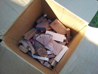 Up for grabs, just a mix of wood. There is a lot of Mesquite some of which is very wormy and a bunch of other random woods. This wood is random sizes and shapes and I can't cherry pick because that's not fair. I am going to dump it in a big tub and mix it and fill boxes. You will be able to get many pens out of this.