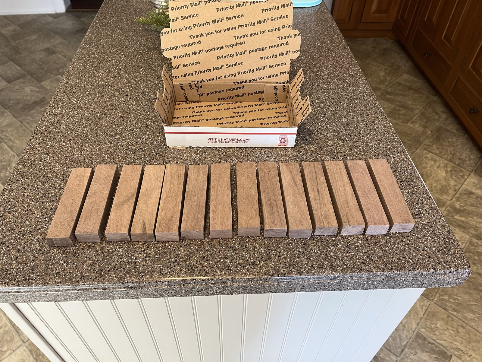 Ok - like Michelle (Hippie3180) I am late to the party, but I would go for a medium Priority Mail flat rate box to Nebraska, 68601. I typically use 3/4 x 3/4 x 5 but 1 x 1 by 6 inches (or as long as will fit in the box) would be good for me. Walnut is preferred, but a mix would be OK with me too. - Thanks, Dave.