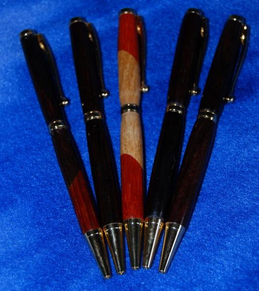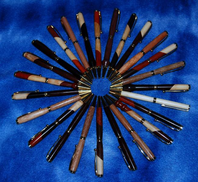 Here are some images of my first batch of Freedom Pens....these will go out in the mail on Monday to Sarge Kelly to support the BlackHawk turners group and the Freedom Pen Project. They are mostly made from the pre-drilled mini blanks from PSI, with a couple of other blanks in there as well. Lots of Indian Rosewood, Ash, Milante, and Paduak with one made from Purpleheart. I really hope the recipients enjoy getting the pens as much as I enjoyed making them.