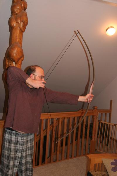 Rick P said:Ocrfyst Raw hide backed Ipe. 45# at 28" made for a young hunter in Homer Alaska. Ooops got pics of two Ipe bows instead of just the one. The one I am drawing is Orcfyst and it has a purple heart handle. The other was my first lefty.........so I geuss you get two Ipe bows for the price of one.