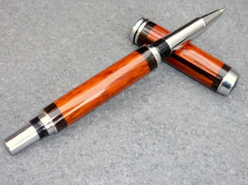 Hi, here's another Jr Gent from my shed. The timbers are Padauk and African black wood, finished of with about 20 coats of c.a. Once again constructive coments really welcome. Mossy. eace: