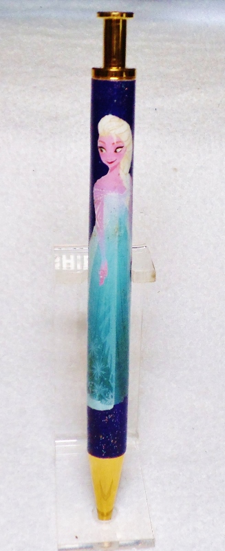 A couple of pens I put together for my 2 four year old Grandaughters over the weekend. First is Anna on a Longwood Click Pen kit in 10K gold from Rockler. The base is a turned Maple blank colored in Dioxazine Purple. Anna was added and iridescent diamond dust covers the purple background, giving it a star filled sky effect. Deco-Podge sealed the transfer sticker and background. 15 coats of thick CA built up the finish. Maple barrel was colored sanded to remove all grain. CA finish was sanded to 600 and One-Step Plastic Polish brought the pen to a shine. White spots in third photo are the stars shining. You need to turn the pen to get the full effect !!