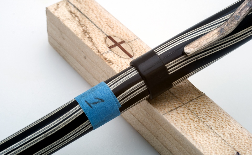 The kit uses a triple start threading. In this case Eagle make 6 waves around the blank. Evenly divisible by 3 and thus all capping scenario's the pattern will line up, as shown in the below photo's. I used painters tape and marked where the clip lined up using each thread.