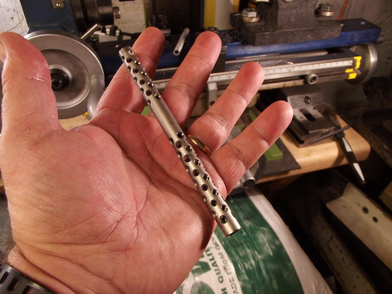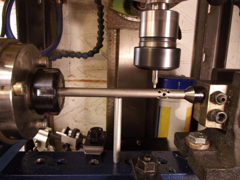 Material comes in a vast range of sizes. Buy the size you want to limit the work. The titanium I used here is 10mm O/D and 8mm I/D . So besides the threading, the only turning was the step between the cap and body. ( some people leave that step, but I think it's essential)