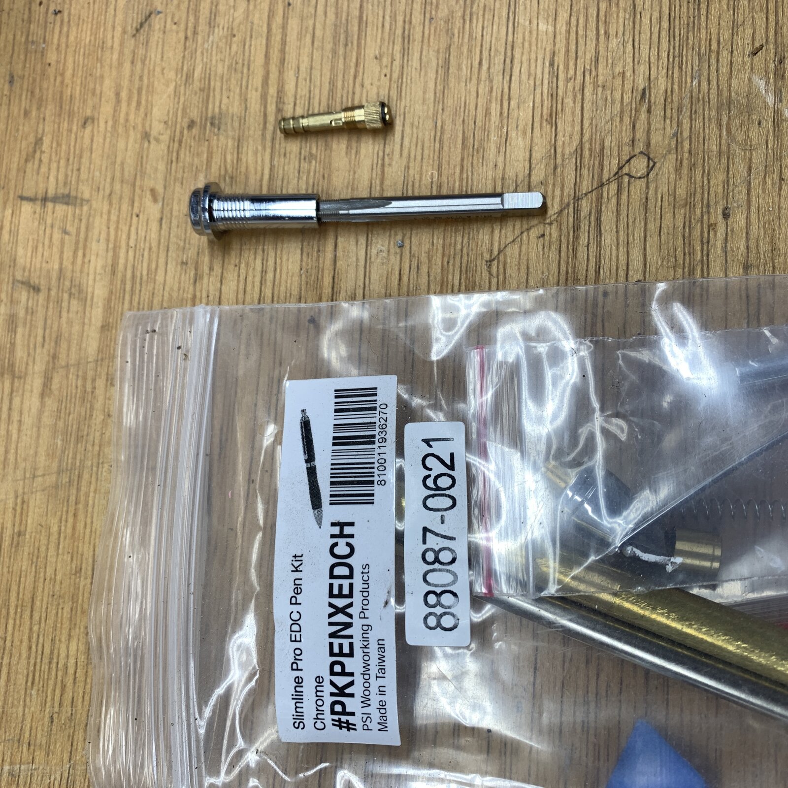 Twist style pens have been easy enough to develop because the transmissions are widely available and the threads are fairly standard. I want to take my pens to the next level and incorporate a click mechanism instead for the ultimate in convenience. It seems Schmidt makes the Cadillac of click mechanisms with their SKM-88 and 192 models. While their SKM-88 is easier to use, it doesn't fit the aesthetic I want in my pens. I know folks have been successful in turning away a lot of the bulky parts of it, but that's not something I'm too interested in doing. I'm also not sure about the ability to make a custom button either.