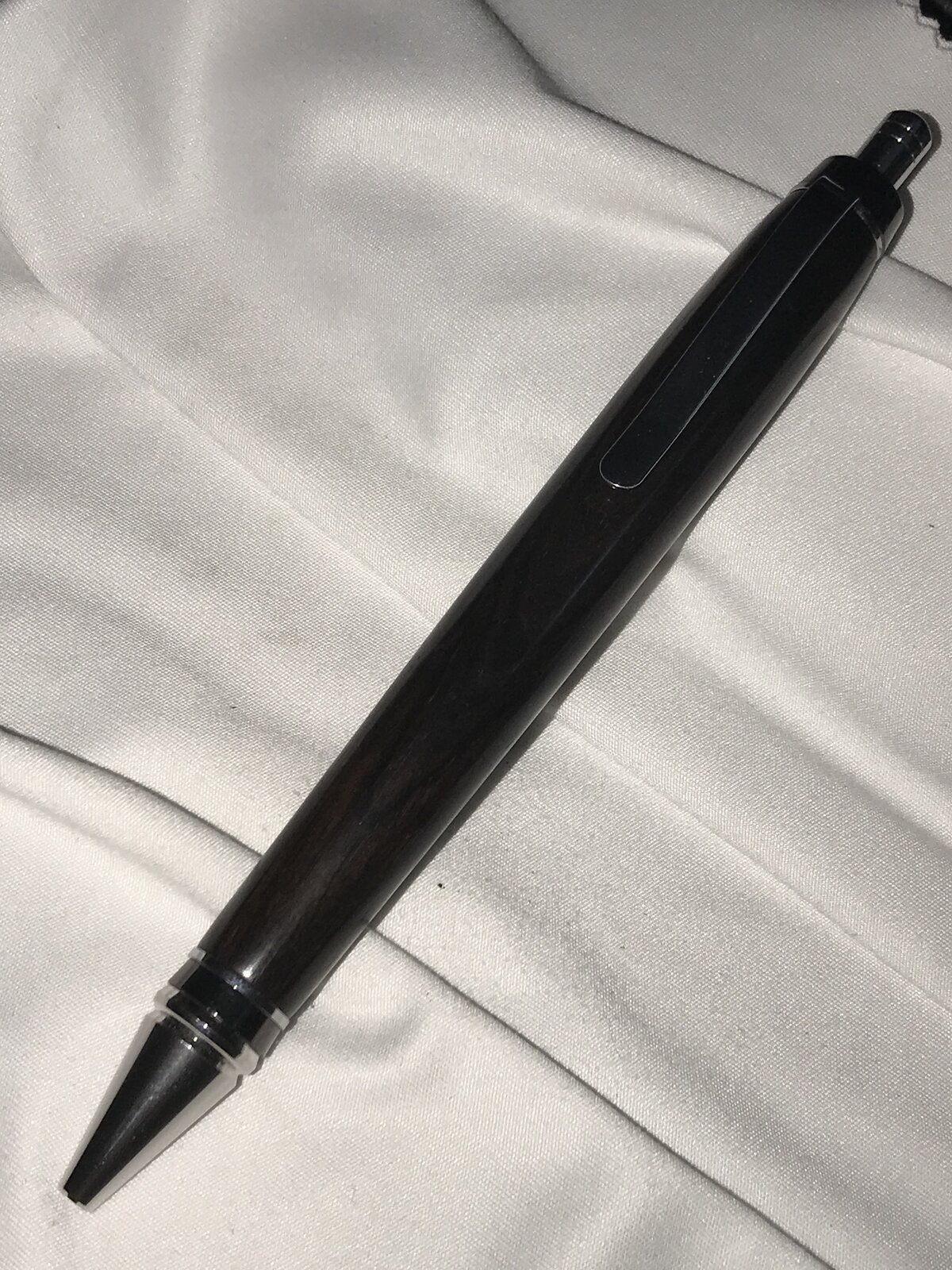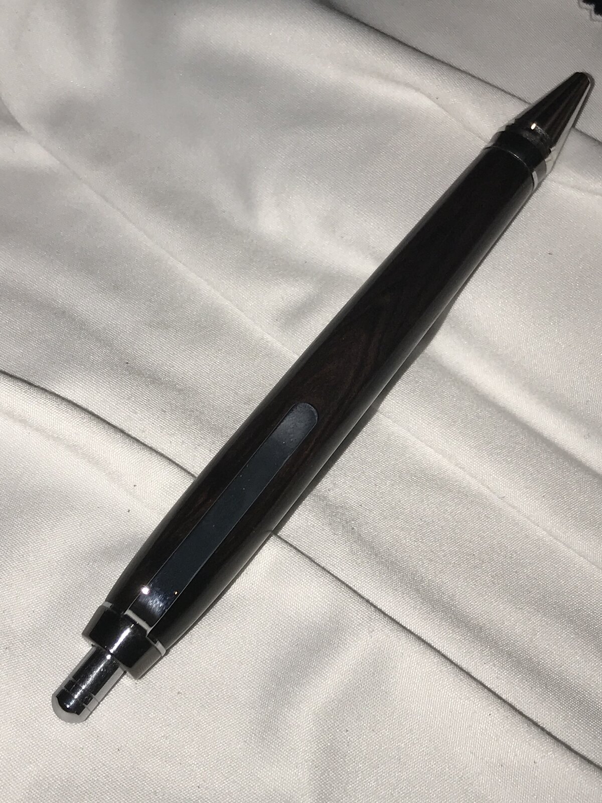 Nice pen. Where did you get the kit? I haven't seen a cigar click in quite a while. And if I may be so bold, you need to either change the lighting in your photos, and/or lighten them in some sort of editing software. I can't even see the grain in the dark photos. I lightened them with PhotoScape, and they're a little better. Are you using your phone camera in flash mode? I've found with my phone, sometimes using the flash will darken the whole image, for some reason.