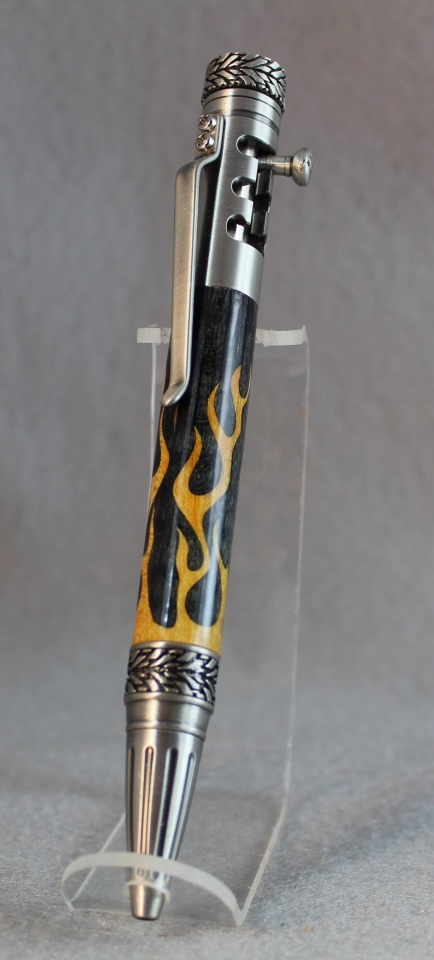 Here's my take on the Gearshift pen. It's antique chrome with orange flames and CA finish. All suggestions and comments welcome, Mike