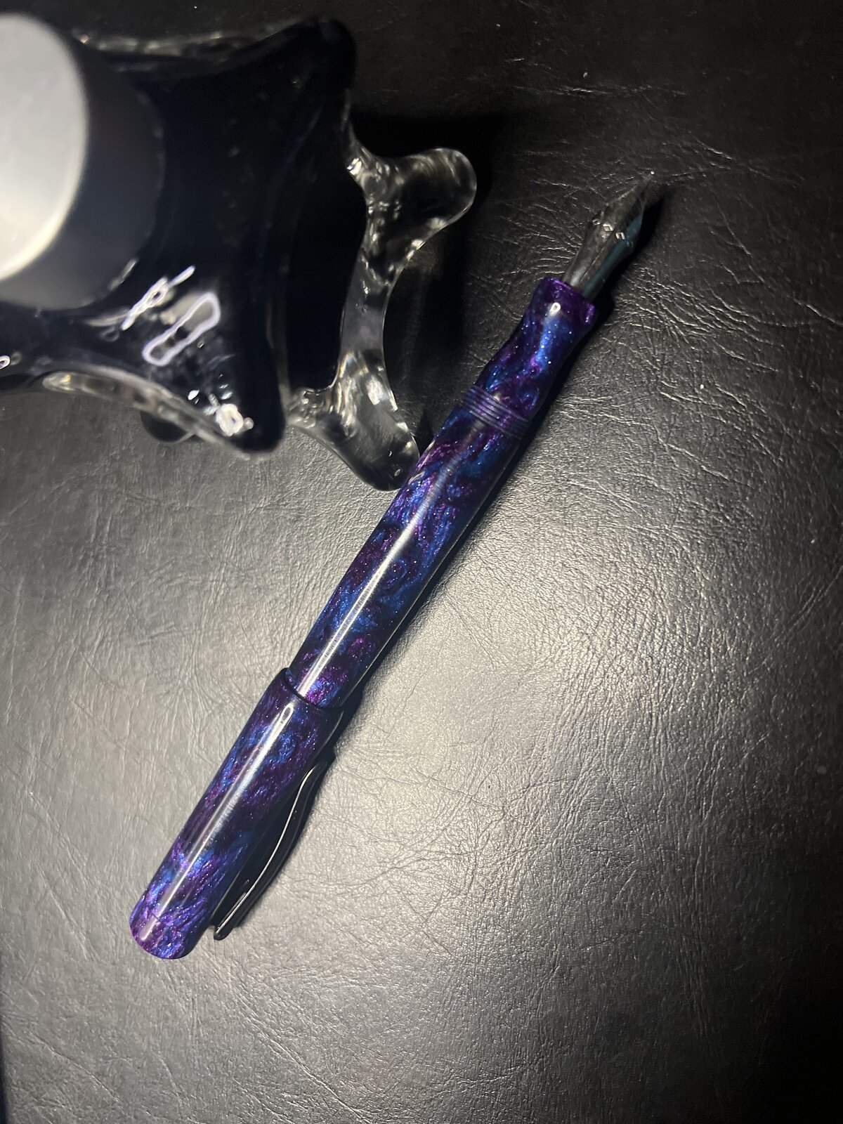 I'm really happy how this pen turned out. I had to make the section twice. But am very pleased with how the clip integration turned out. Diamond Cast blank, JOWO #6 Nib (Franklin Christoph EF flex installed) M13T cap threads, and it is postable.