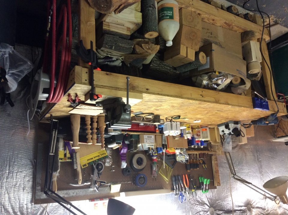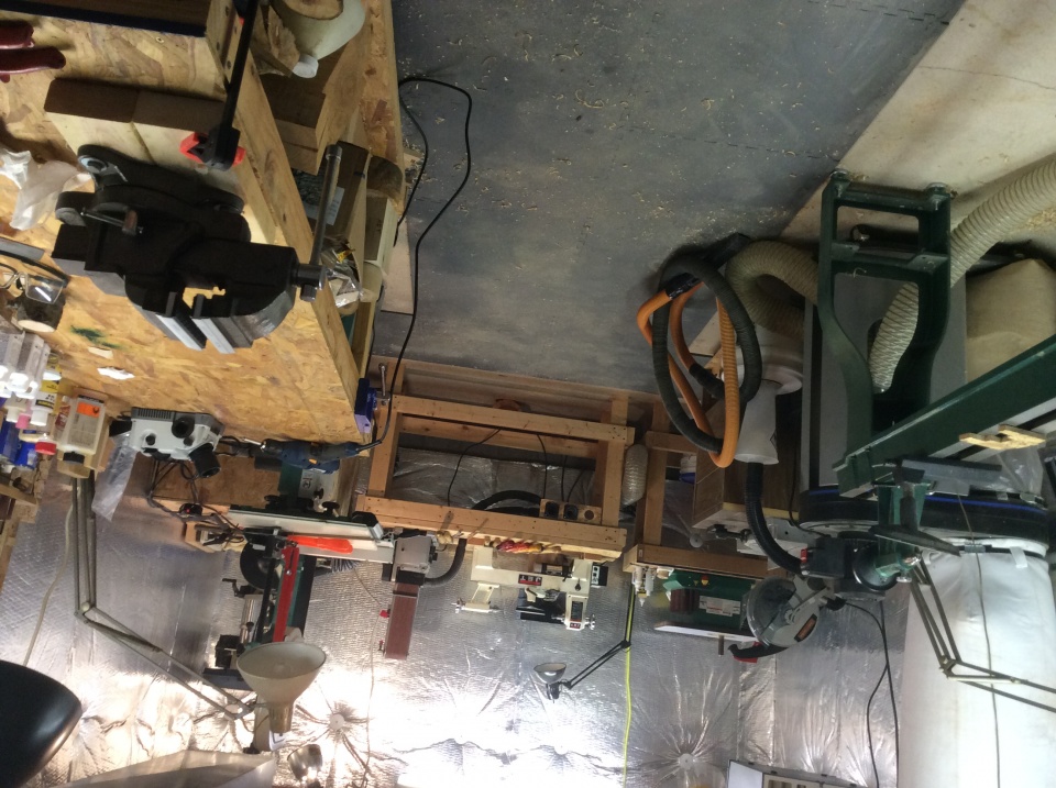 I've rearranged things a few times to get more stuff in the shop. The corner unit with tools and the bench that has the drill press and sharpening system are both new. The work bench is big for the shop but I had built that a long time ago before I started turning.
