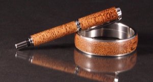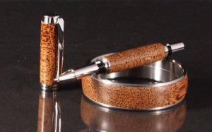 Some times you just have to try a new position. After seeing how the end grain looked on a black palm bangle, I decided to try turning a pen from a cross cut piece of palm. I was worried about blow outs and did get a little cracking that I was able to fill with CA. The pen was finished with odorless CA.