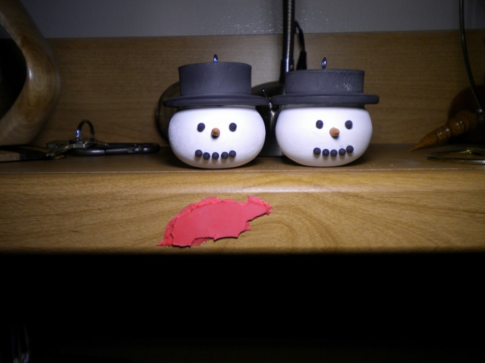 nightowl Member Joined Mar 2, 2008 Messages 323 Location Lexington, Virginia, USA. Nov 3, 2013 #1 Here a the first snowman ornaments that I have made. Body is turned. I used golf tee tips for the nose and I painted some stick pen heads black for the eyes and mouth. Comments are welcome. Thanks. Attachments DSCN1809 (1024x768).jpg 125.8 KB · Views: 291