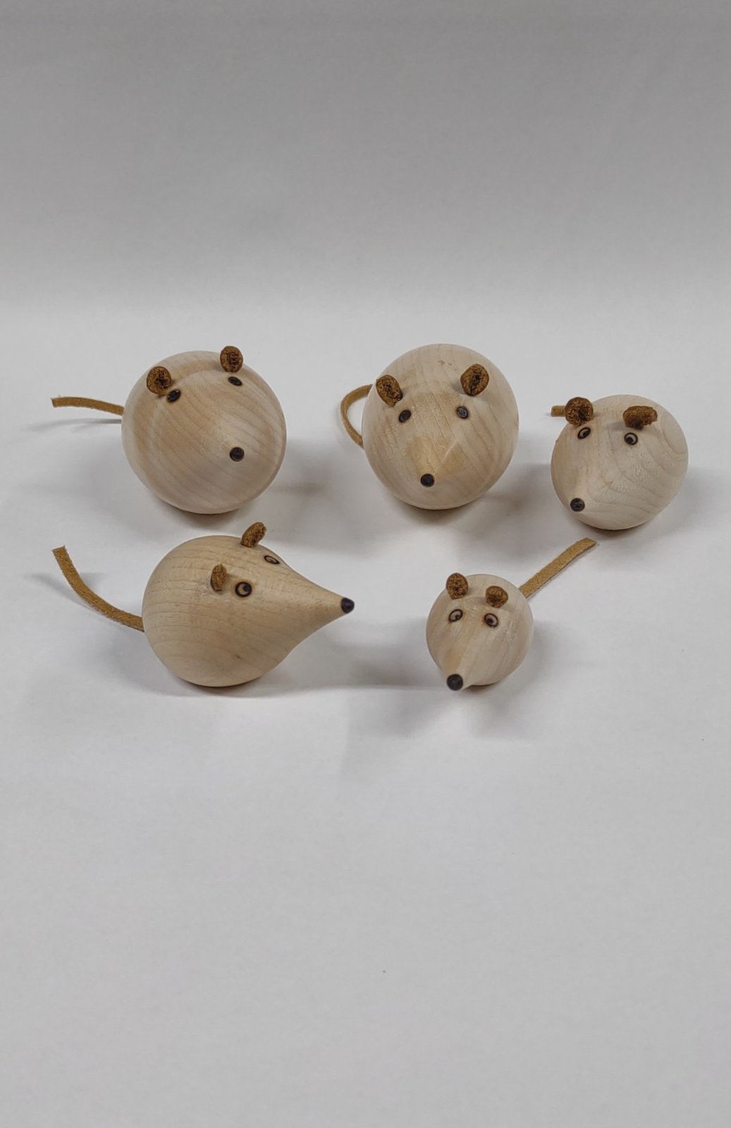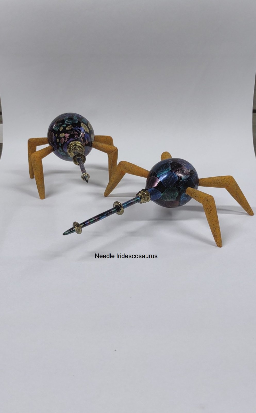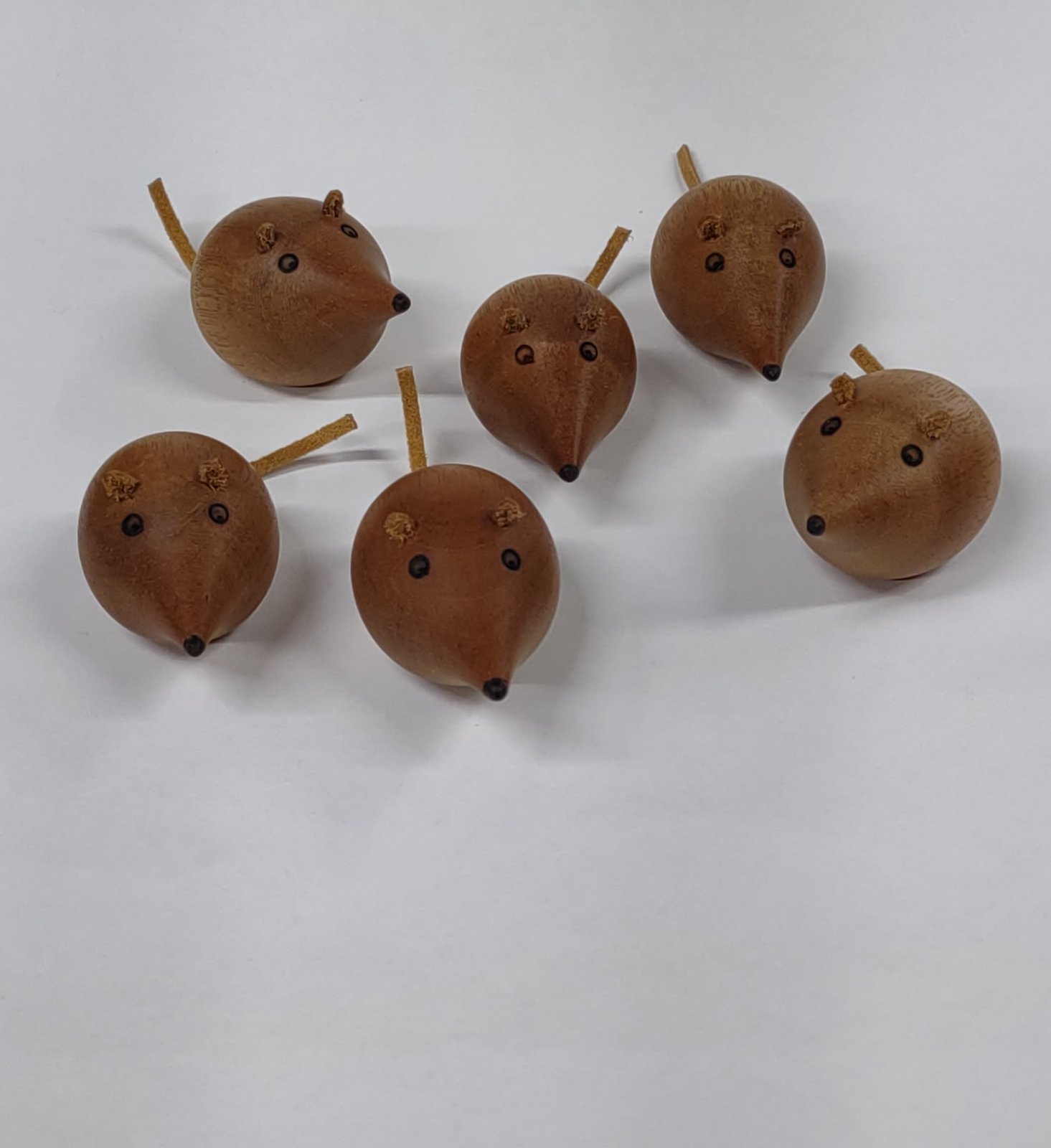 The theme for table decorations at SWAT this year is "critters" and this is some of the ones I have turned so far, still looking for more ideas to add to the collection. The mice are all Maple and the Needle Iridescosaurus are Maple, painted Black and accented with iridescent paint.