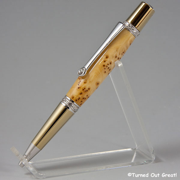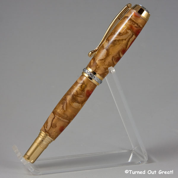 I have a custom order for a fountain pen and haven't turned many pens lately. I decided I needed some practice before jumping in on this. Here are the new pens. Mini corn cob, yellow cedar burl and one of my custom casts using alumilite and beech nut husks.