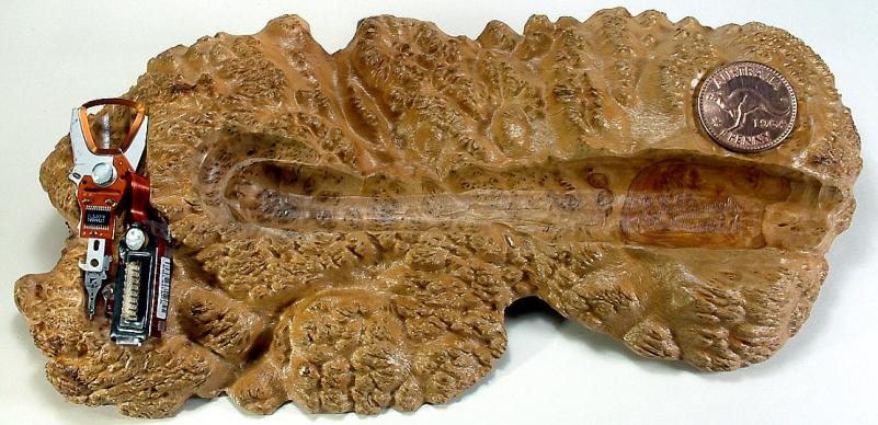 The Burl Slice is Brown Mallee and the blank Australian Hairy Oak (the bark is about 1 inch thick matted hairlike)