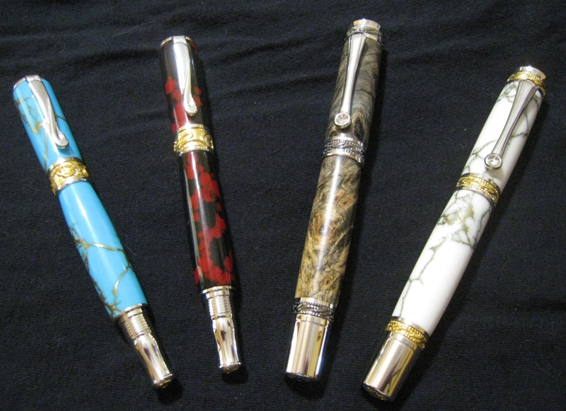 Charlie is right. The 2 on the right are Majestic with one in Tru-stone and the other in stabilized buckeye burl. The others are Nouveau Sceptre in Tru-stone. Only been turning for about a month so the Tru-stones were interesting and scary to turn at their price.