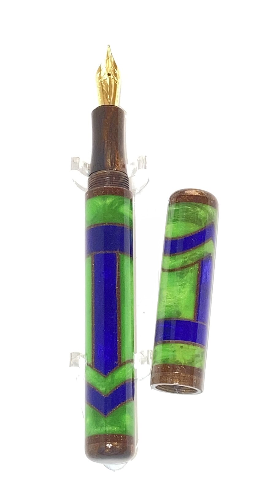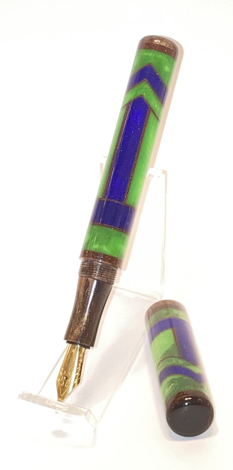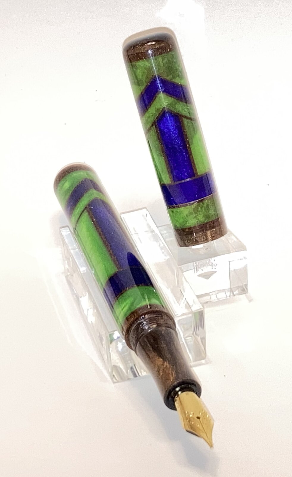 Another new (to me at least) project I have been working on. Gisi style blanks were purchased and were designed for the Shakespeare pen kit. I drilled and sleeved both the cap and body with the same material that I used for the section.