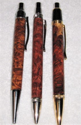 Glacia in Maidou burl (golden amboyna) modified into a click pen, using the skm-88 click mechanism, its a full 5.5" long