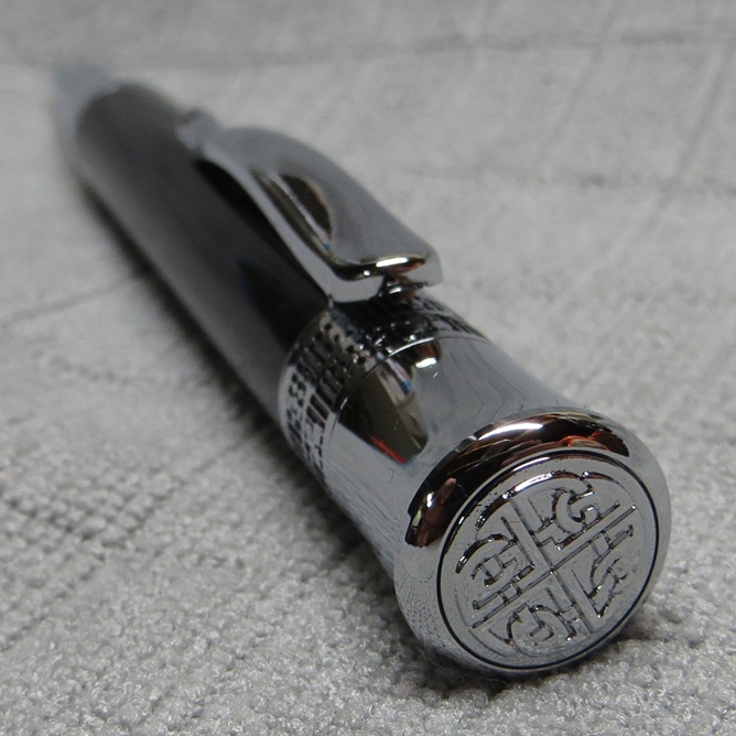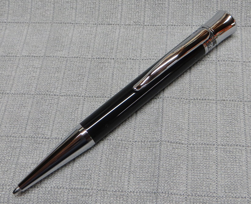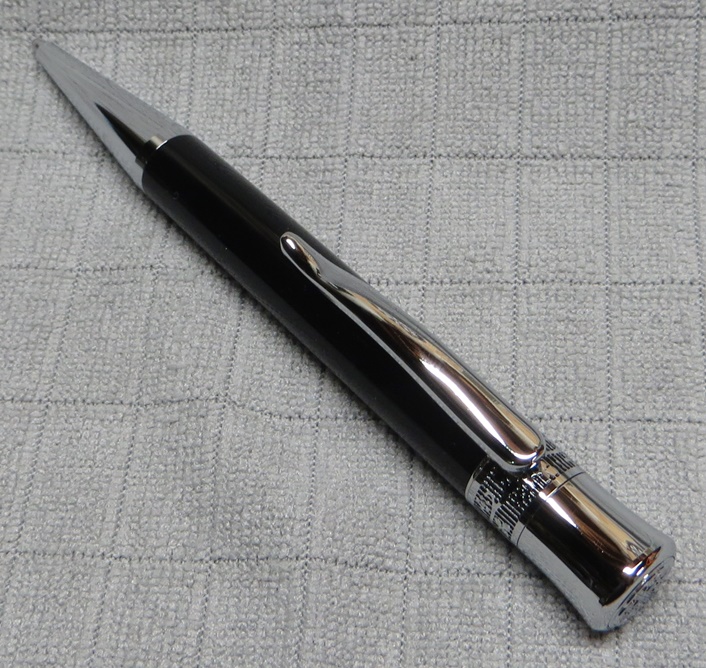 I've wanted to do a chrome pen with all black body for a while now. I've also wanted to try a Glacia pen. I finally killed two birds with one stone. The pen is obviously chrome and the blank is an Aquapearl from PSI called simply Jet Black. It's another soft blank that turned easily, and finished very nicely. I really like the simple looks of this pen, and yet it looks classy at the same time.