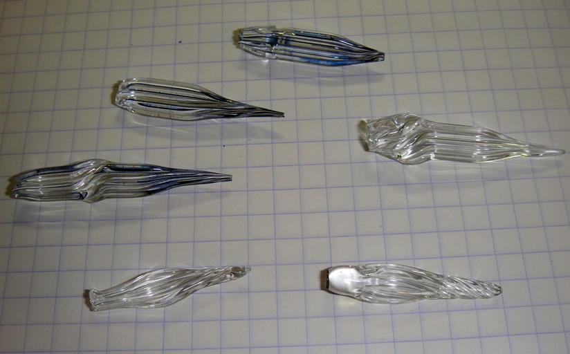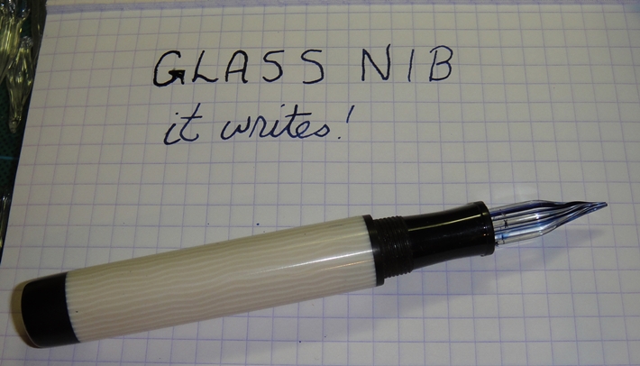 Started to play a little with glass and figured why not make a few nibs. Most write pretty well, but made need a little smoothing. Was able to fit one in an existing section I had just to try it out. May even be able to use with a convertor if I can seal everything off. Plenty of things to try, but here is my first. Here's a picture of the pen as well as some of the first batch of nibs.
