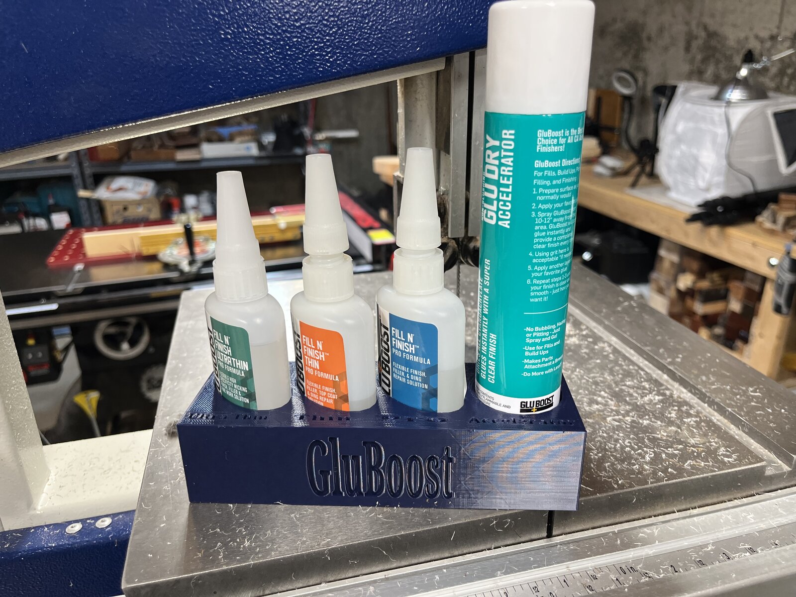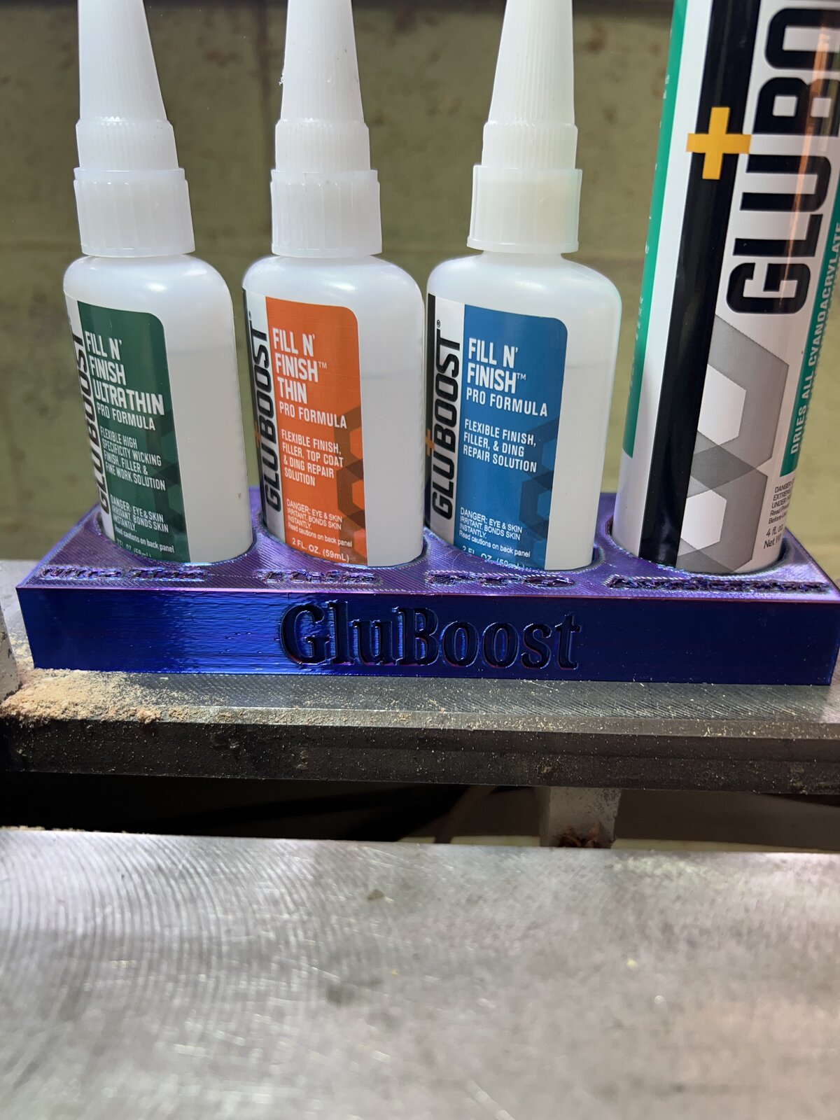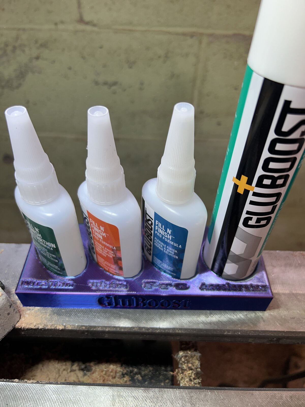 Trying to think of a way to keep my GluBoost organized. I figured why not put the new 3-D printer to use. Works out great, really happy with how it came out