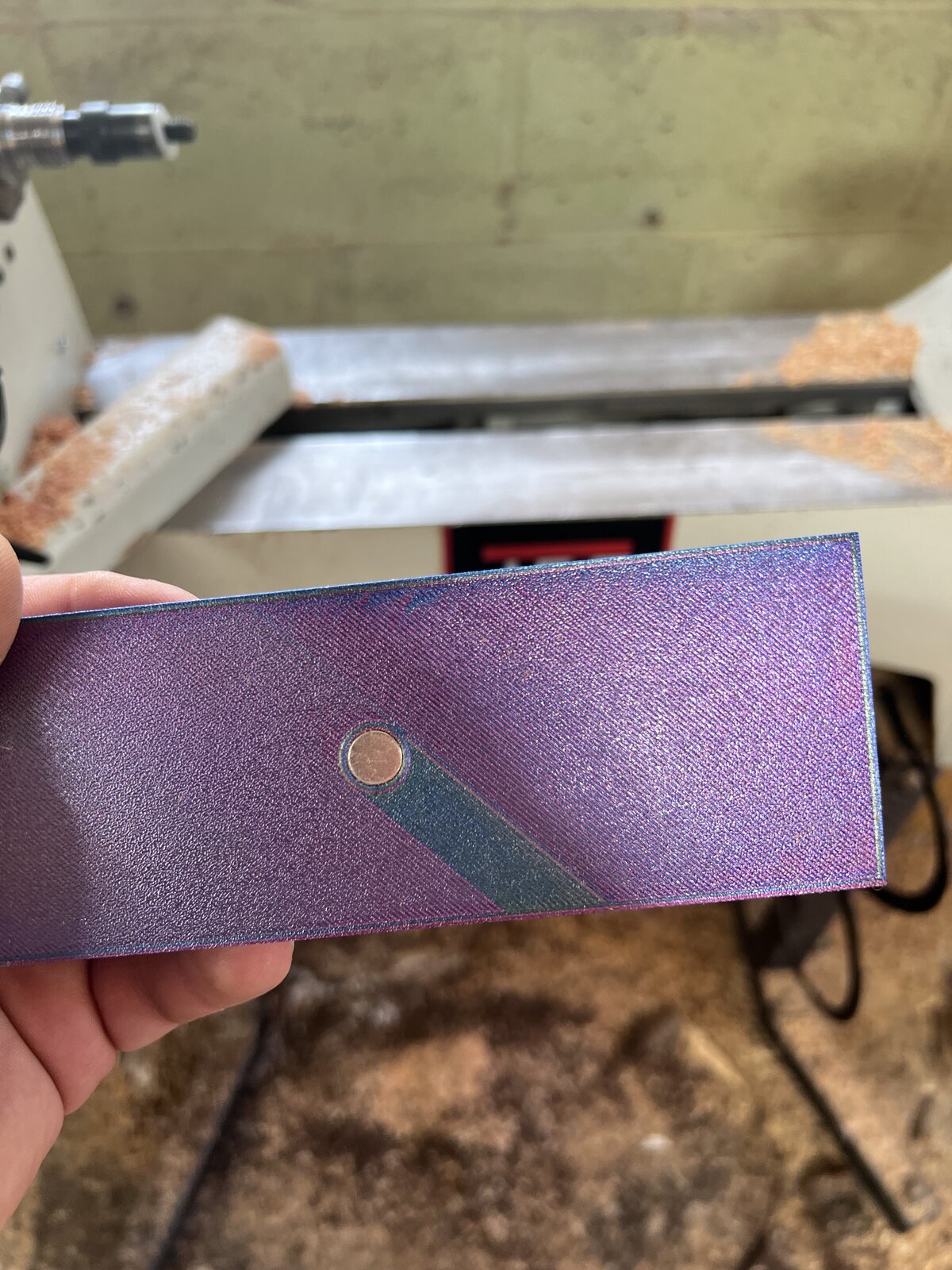 I was thinking... "I wonder if he embedded a magnet into the bottom to keep it still on the lathe?" and then the last picture answered that question!