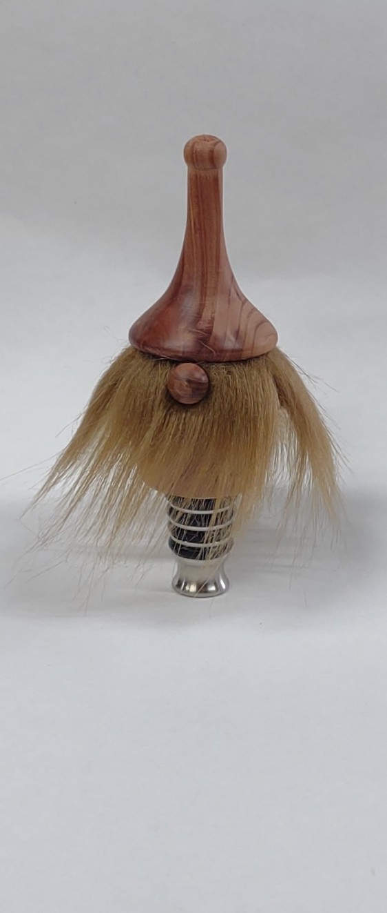 Well, "Red" wanted to join his fellow Gnomes in their festive 4th of July and wine sampling celebrations, but unfortunately his flight from Ireland got cancelled and he was not able to make it in time. Oh well, hopefully they will have some wine left over. Wood is Cedar with just a buffing with the shavings to burnish the wood for a finish.