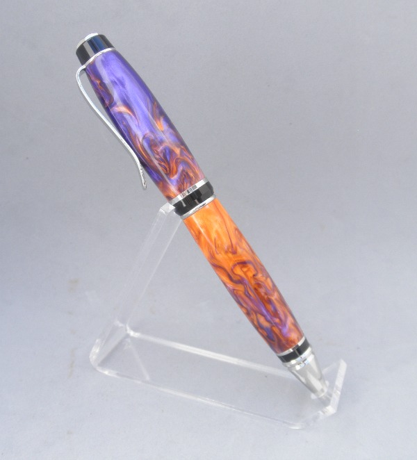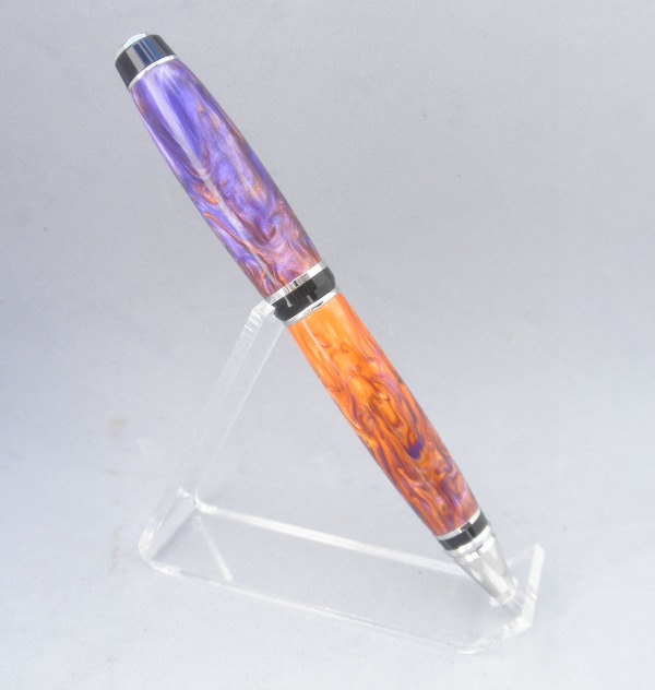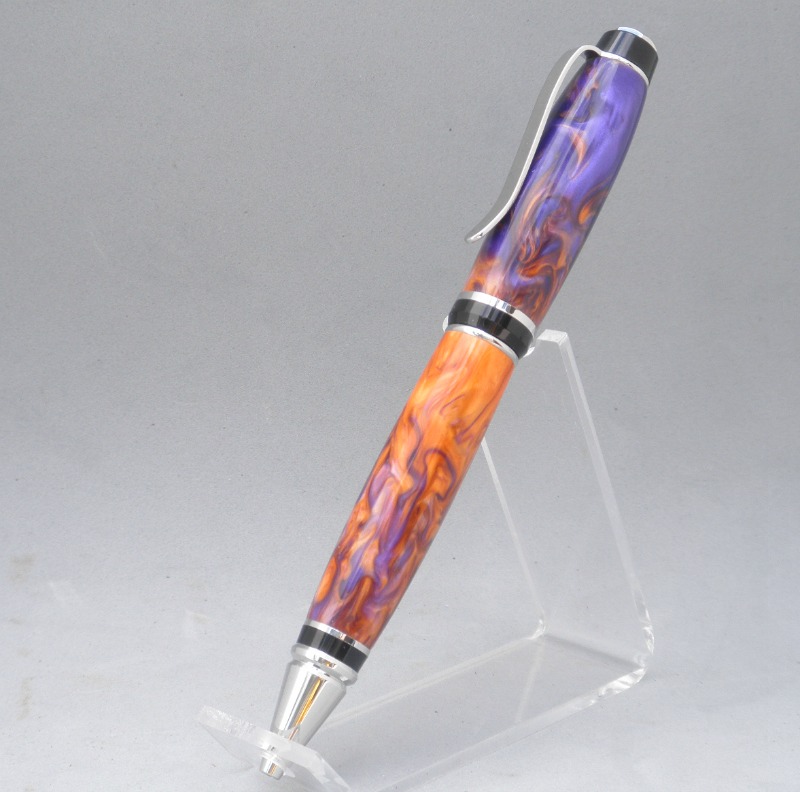 I recently finished this Clemson pen for an order. It is a platinum cigar made from another blank from Jonathon Brooks. The blank is incredible. It looks almost like purple and orange flames. The guy loved it when I gave it to him today.