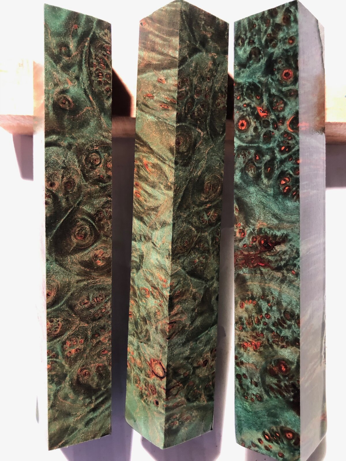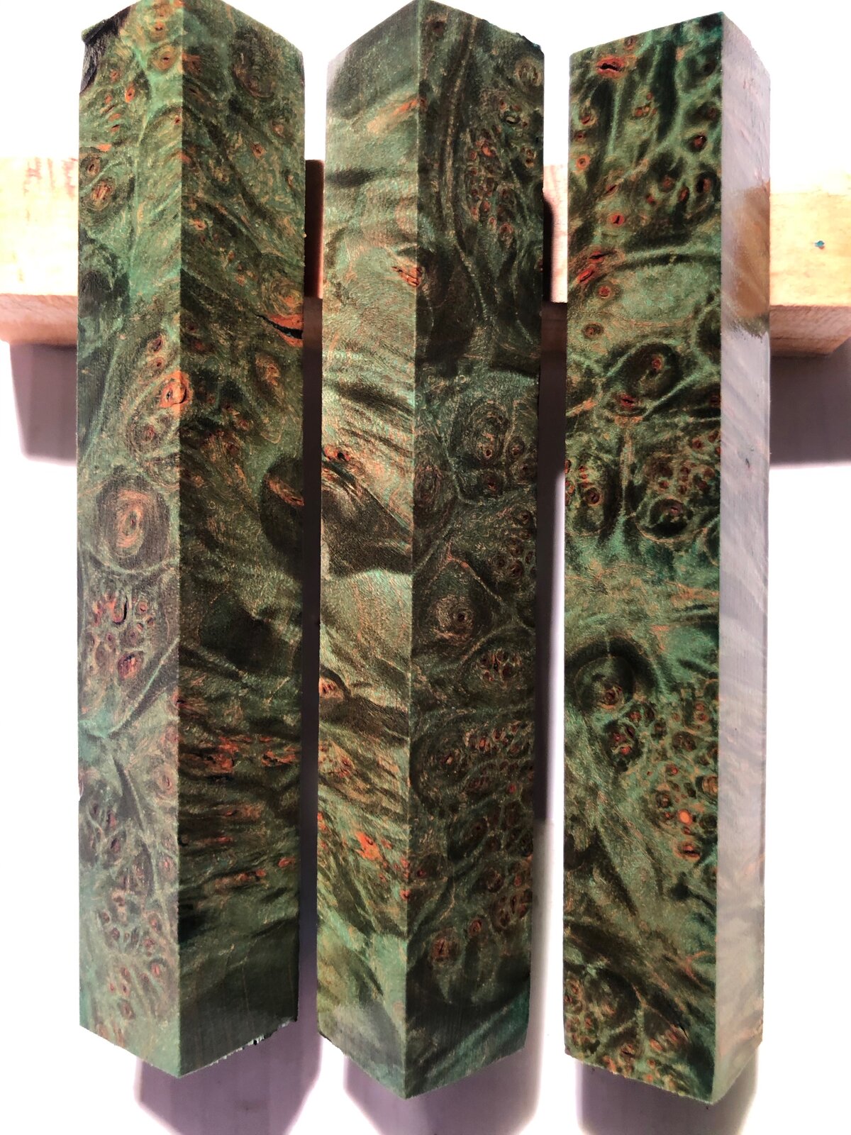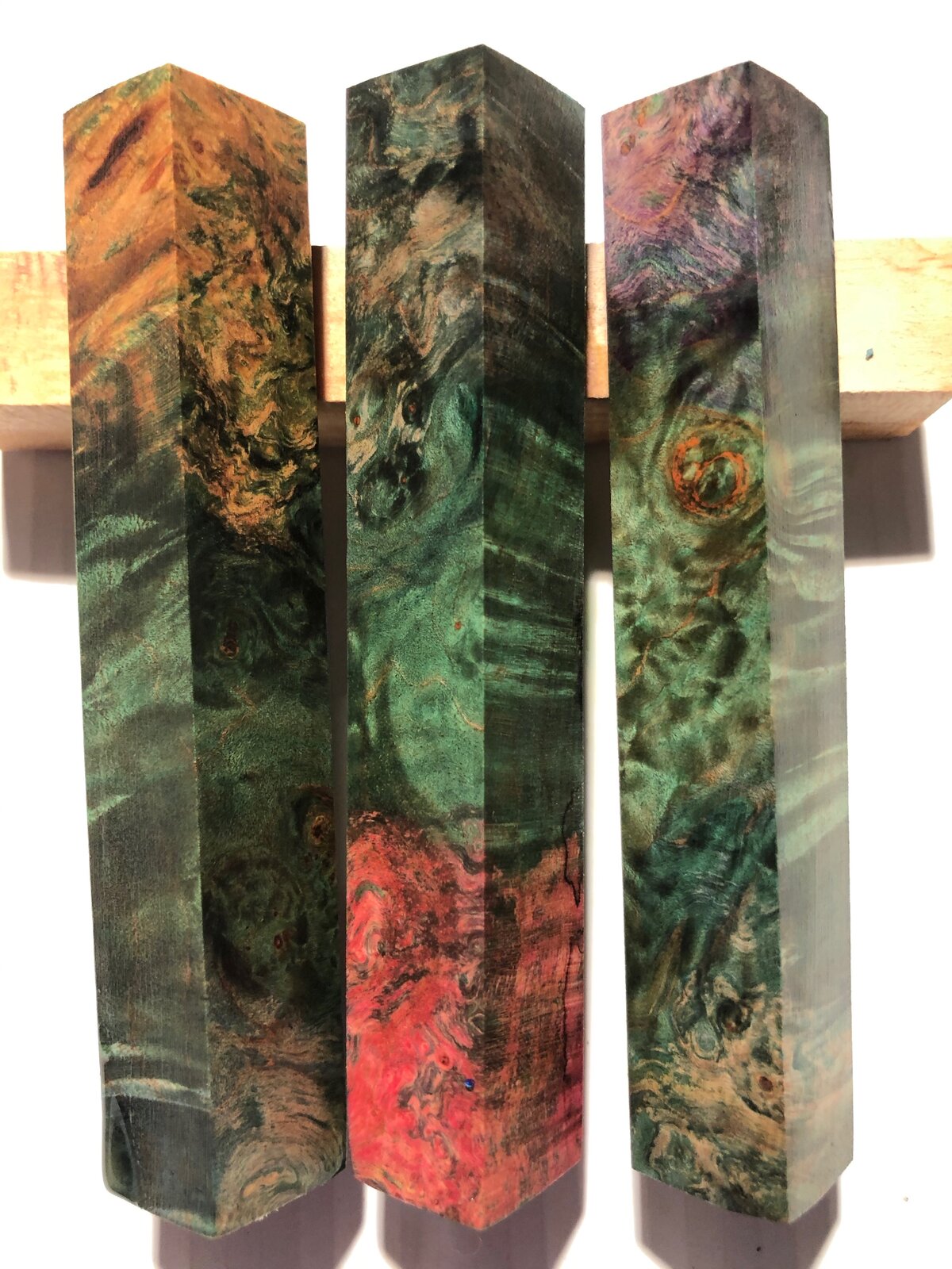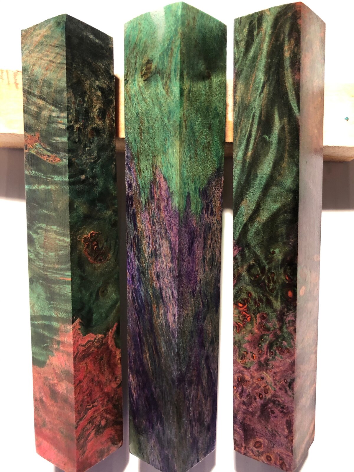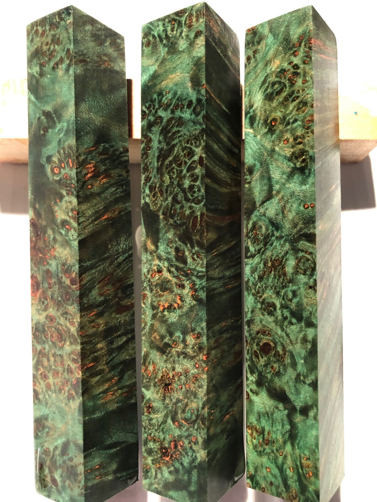 Set 17-18 - Double Dyed Green maple Burl, set of 3... $24