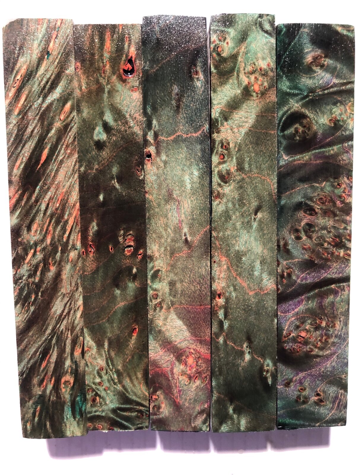 Set 16- Green Maple Burl, Various, set of 5... $20