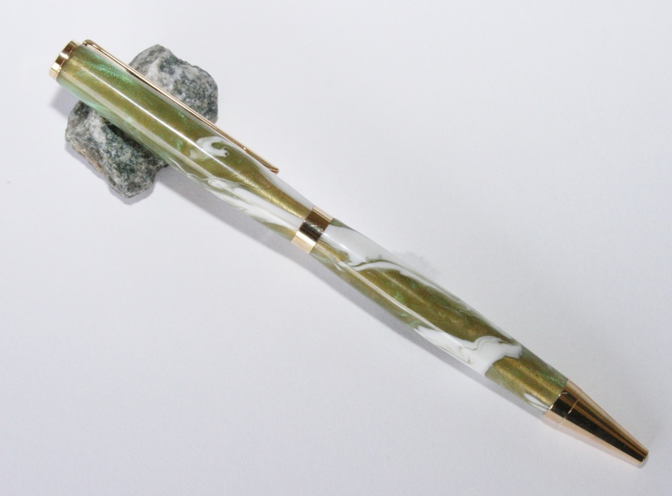 This is not one of my better pens, I over turned the nib end a bit and I'm not happy about that.:frown: The blank is by Fred (Ptownsubbie). Evelyn picked out both the blank and kit and I paired them up. I did not back paint on this one and I think I like the brass showing through. All C & C are welcome.