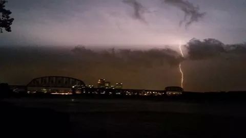 I did some late night fishing last night on the river. There was one heck of a storm that blew in. Luckily we were able to take cover in a little cave. Somehow I snapped a few shots of lightning with my camera phone.