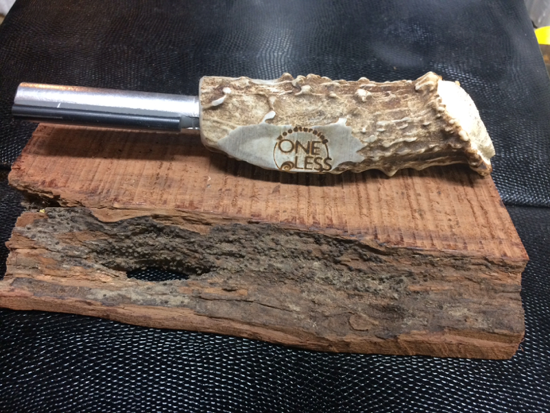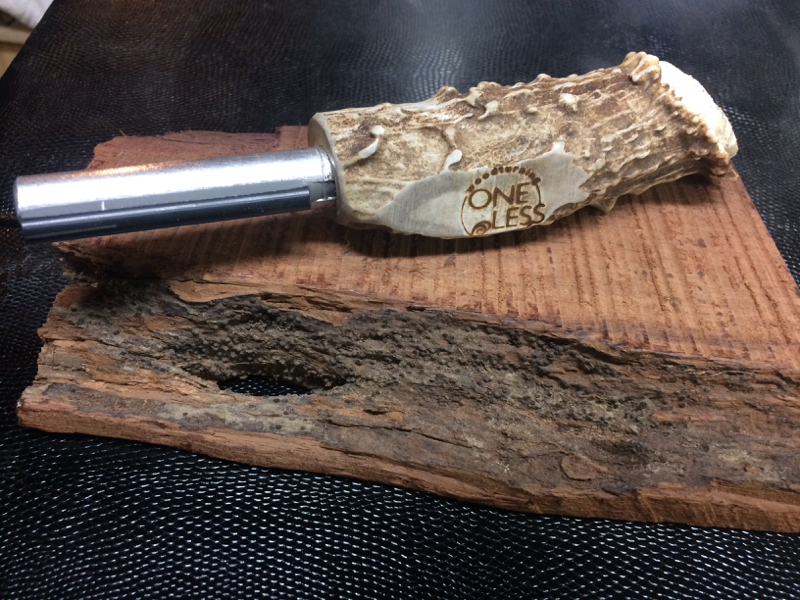 So I was in the garage/shop doing a little organizing last night when a buddy called and wanted to come check out my stash of pen blanks. I guess the stylus pen I made him is a big hit at his work (AT&T). A couple of the other guys want one but wanted to know their options for wood. A while back I had bought some random project kits from PSI....notably the fire starter striker. So my buddy sees them in my kit drawer and says he just has to have one so I said sure pick out a blank and we'll crank one out real quick. As he was searching through the bins and totes of wood I came across some nice whitetail deer antlers I had. Well to make a long story short....this is what we ended up with. C&C welcome!!!