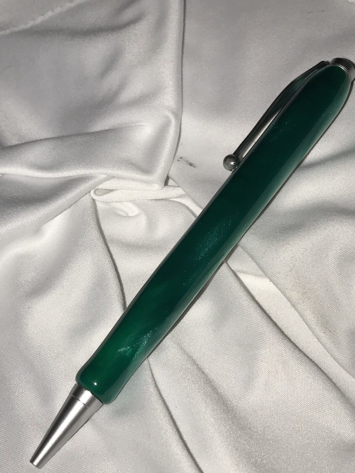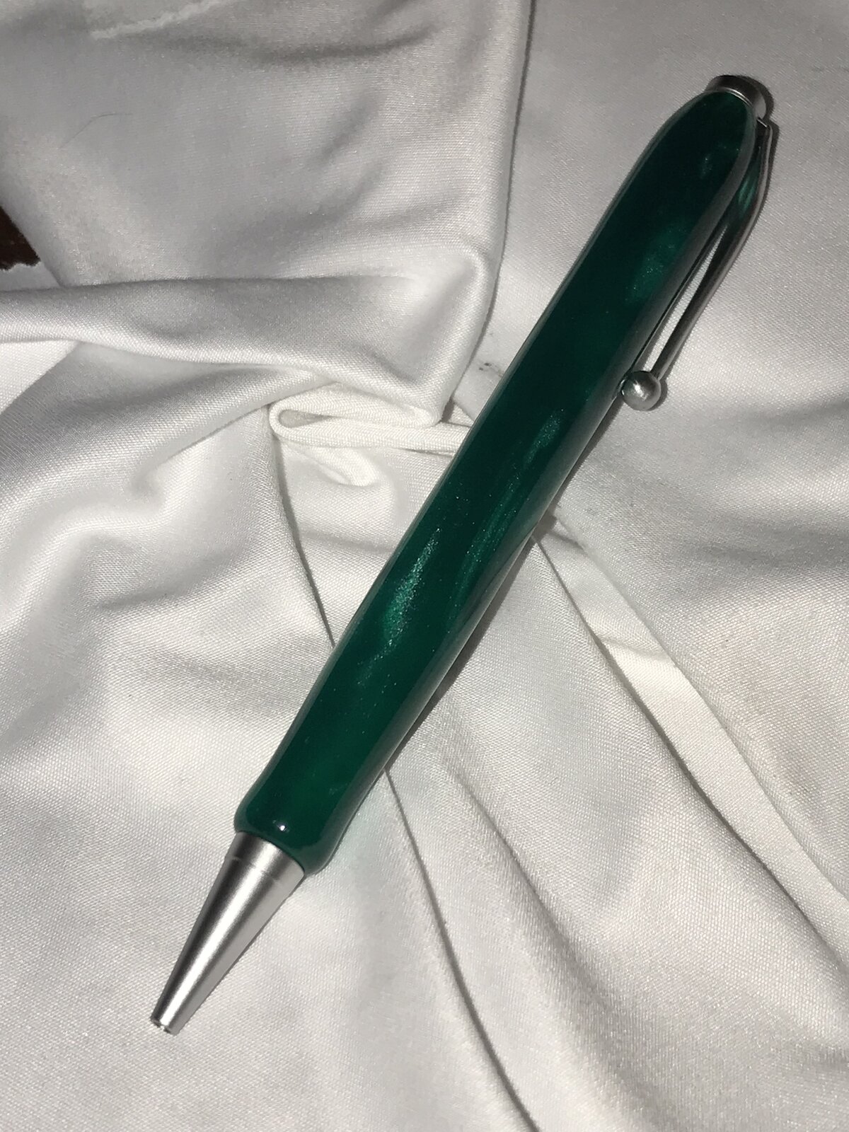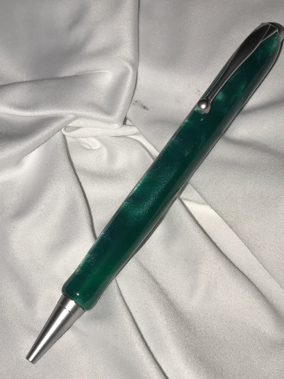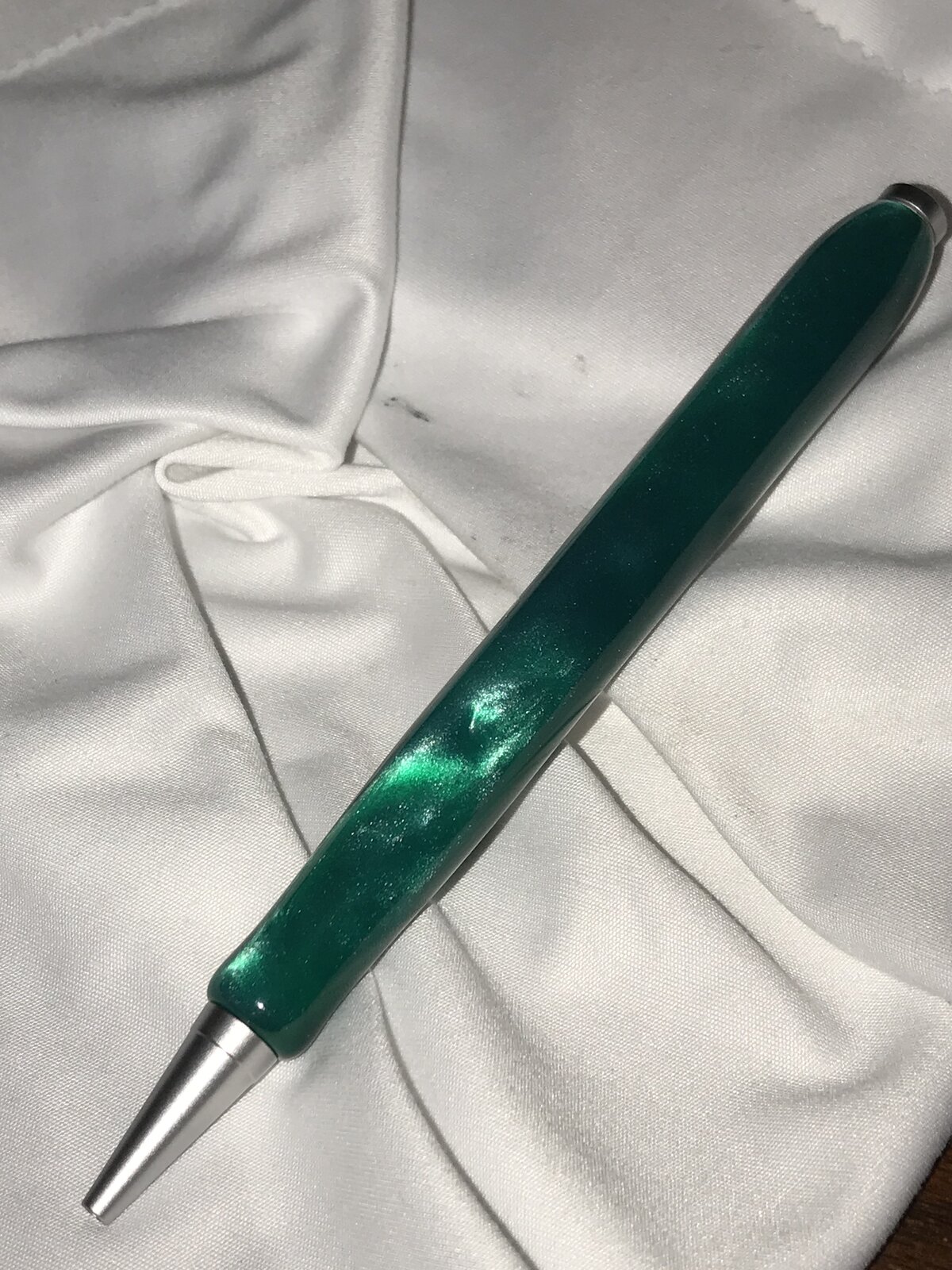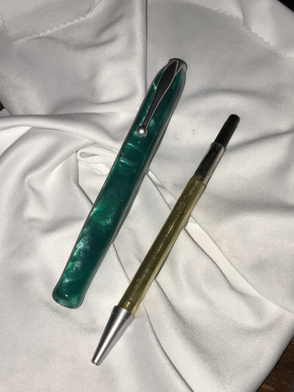 Got back into the woodshop. Started with a PSI Satin Comfort Twist Pen Kit, #PKCFPENS, thanks @TonyL and BHW Translucent Green AA22P blank. My routine off-the-lathe finishing following final shaping with wet 320 grit paper. Polish was different this time, hand rubbing Meguiar's 105 then 205, again, thanks @TonyL. This was finished off with a hand-rubbed coat of Ren Wax.