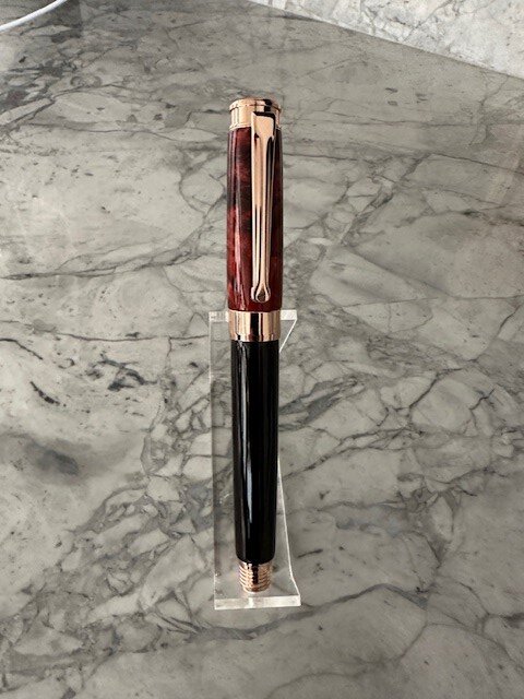 I made a Beaufort Leveche pen for my granddaughter's graduation gift. I used African Ebony for bottom portion and for the cap I made a Pine Cone with red and black resin for the blank. Here are a few pictures.