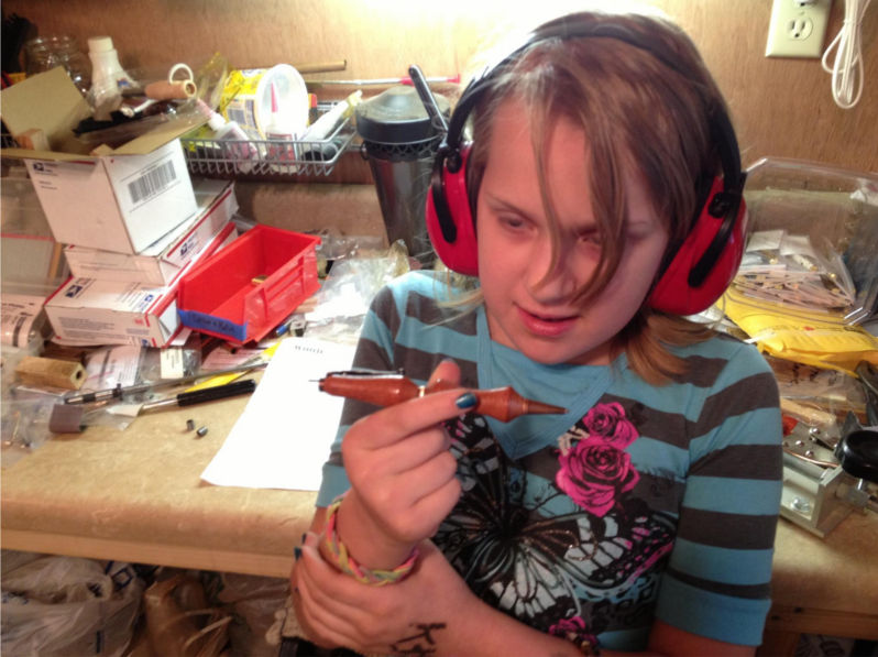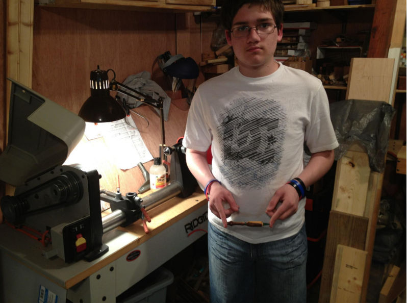 My grandkids finally wanted to turn their first pen. Colton is 15 and Katja is 11. I let them pick the blank and color on pen kit. Colton wanted the green kit and Desert Ironwoon. Katja wanted anttique copper and Leopardwood. I let them make any shape they wanted. Colton didn't want the clip(already modifying).