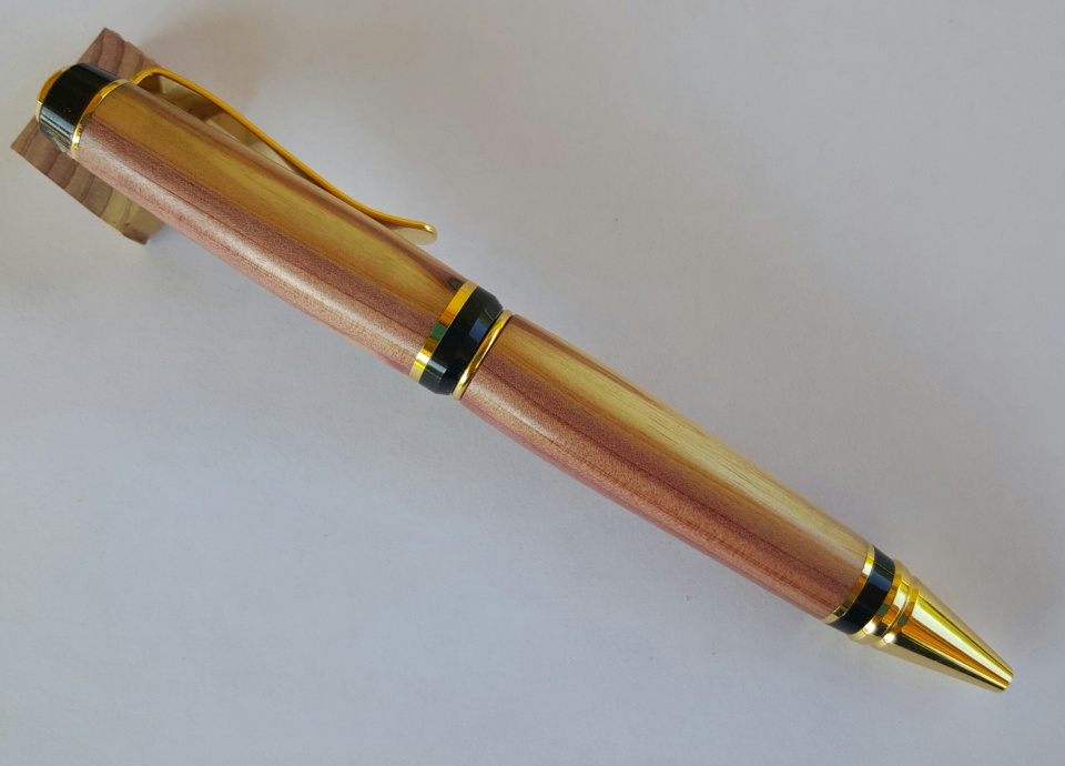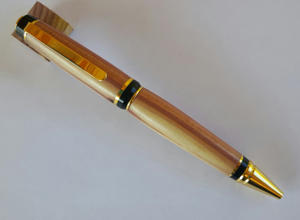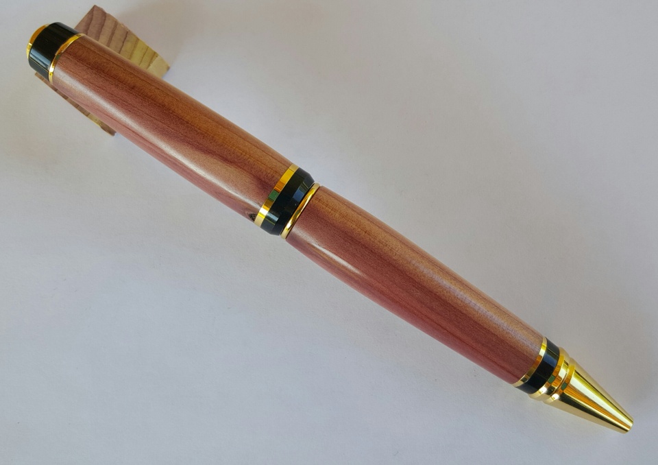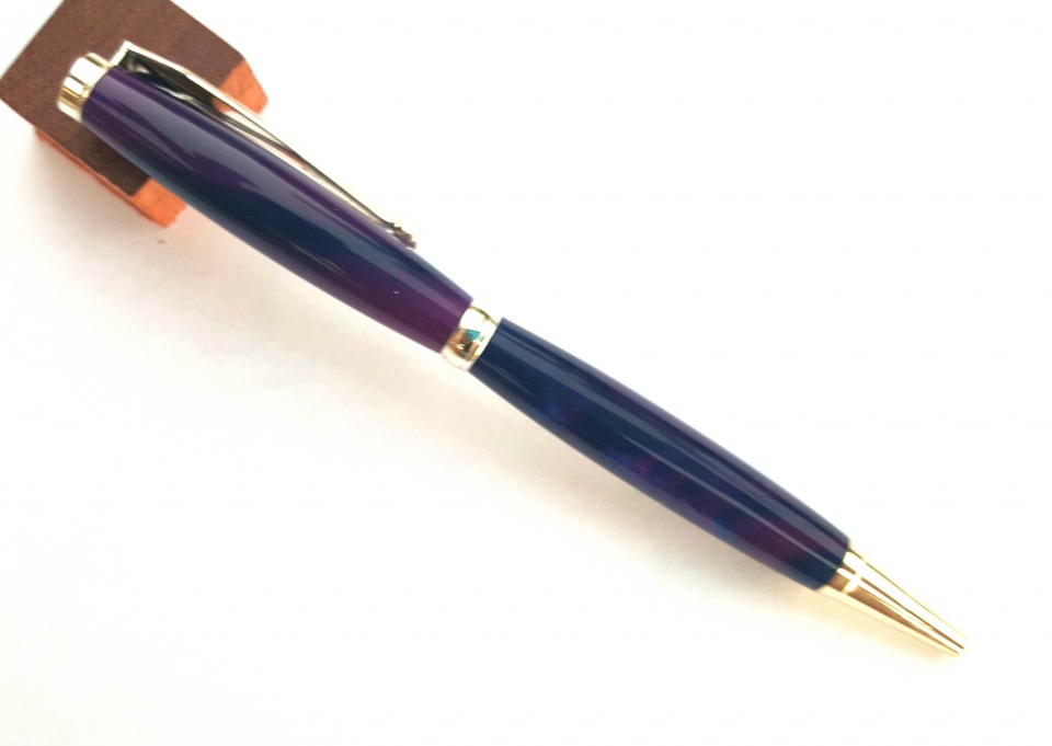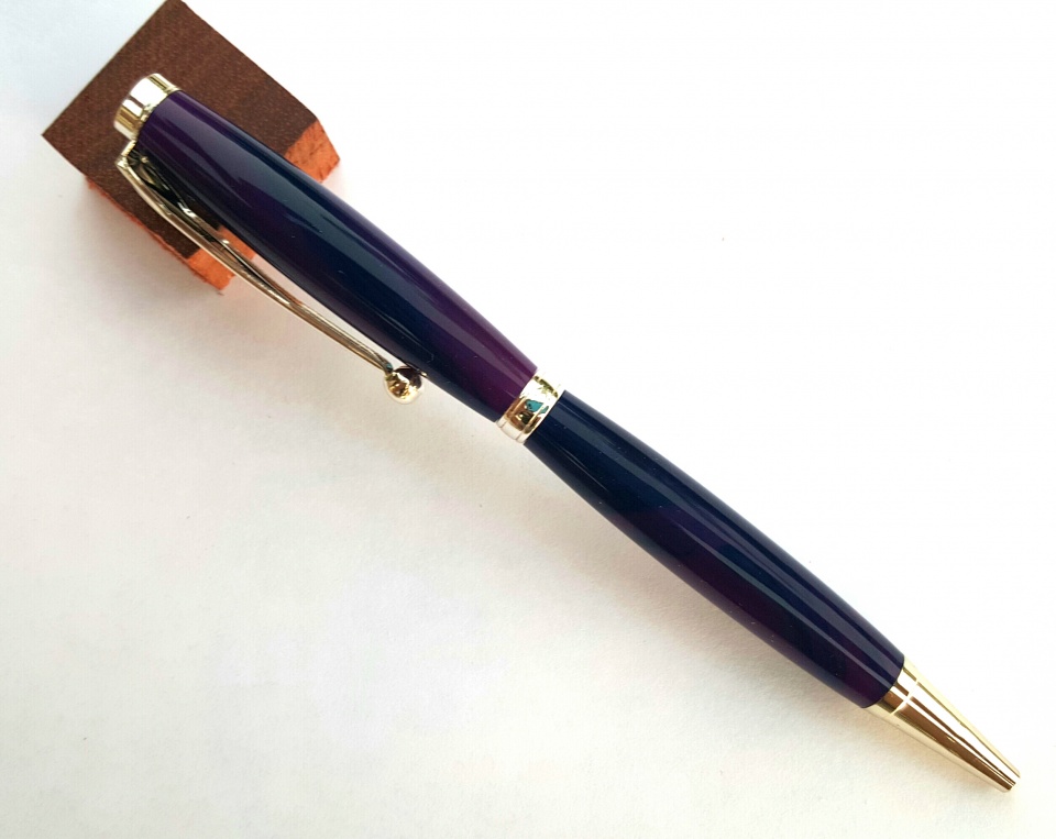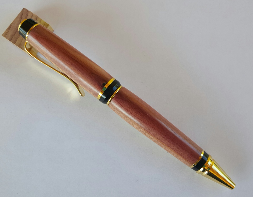 Theses are my latest. The first 2 photos are of a silver slimline dressed in a bowling ball blank that smells like grape. I sanded the blank to 12000 mm and polished with Hut Plastic Polish the next 4 are of a gold cigar dressed in Red Cedar I sanded from 320 grit to 12000 mm and finished with 4 coats of Pens Plus. I made the grape pen to Evelyn. All C & C, thanks for looking.