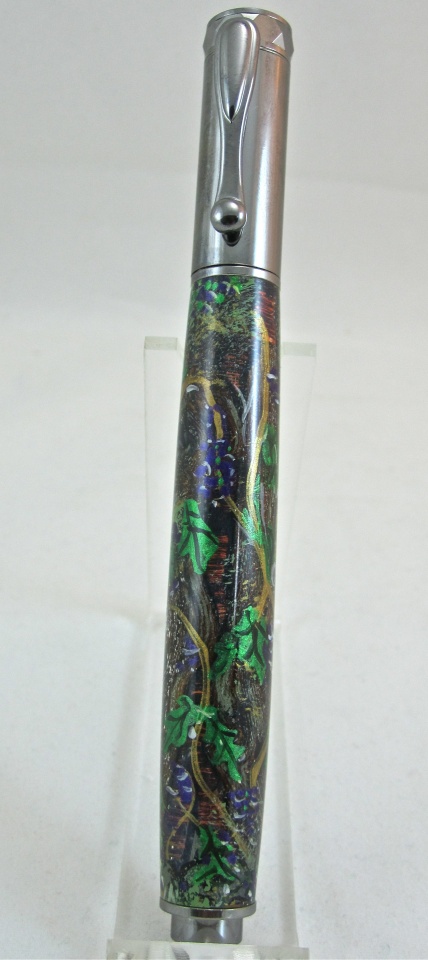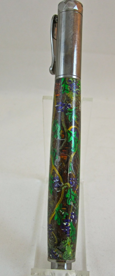 so thinking that it might add some depth to the look,I added ( what in my world looked like ) grape vines. Put my paints and brushes away and re-cast the blank. Turned and messaged in the usual manner.