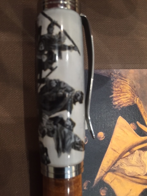 The artwork is hand painted by a young artist we met at an art show several years back and now works exclusively for us painting scenes and portraits on the tubes.