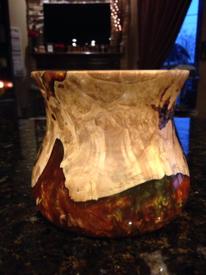 Green/Gold/Brown Wood/Resin Bowl