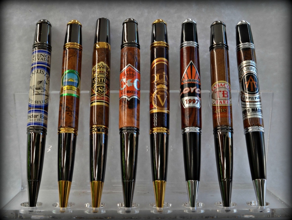 .......Cigar Band pens. These were made of wood, paper, actual tobacco leaves and of course Cigar Bands. Be well.........Jan